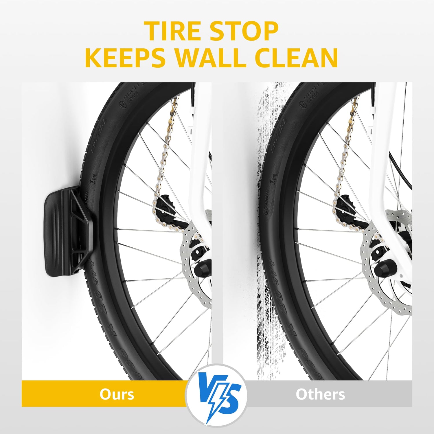 - ăStrong, Safe & Secureă monTEK bike wall mount is made of heavy-duty solid steel are able to hang weights up to 30 kg / 66.2 lbs. Rubber coated wall bike rack relieves pressure on the wheels, rims, and spokes and protects from unwanted scratches. The wall-mounted tire stop not only safeguards your bike but also protects your wall from unsightly scratches. Swivel bike wall mount - Hang and store your bike in a vertical position, allowing for convenient storage and removal.
