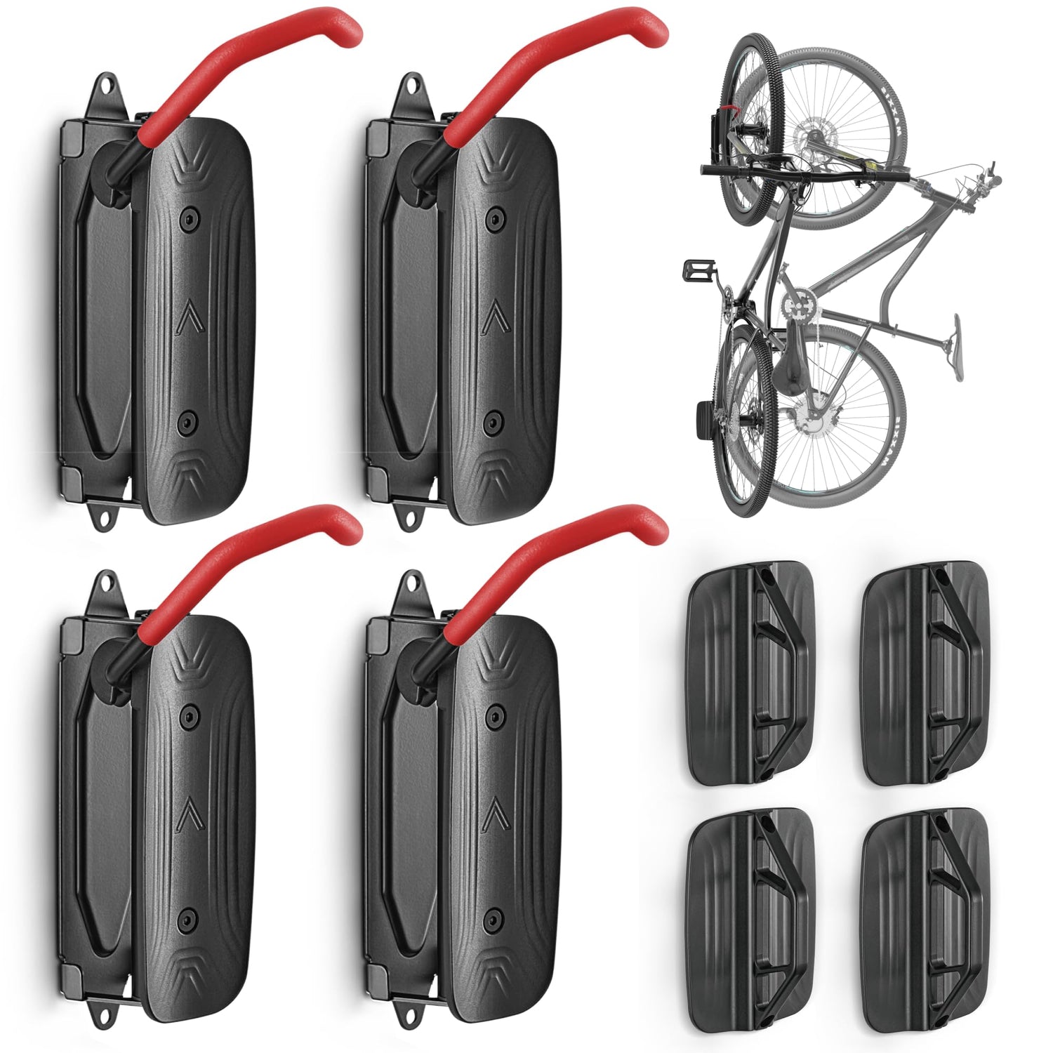 monTEK Swivel Bike Wall Mount, Bike Hangers for Garage, Wall Mount Bike Rack, Space Saving Sturdy Wall Bike Rack, Vertical Bike Rack Holds Up to 66 lbs - Bike Storage Rack for Garage, Red, 4 Pack