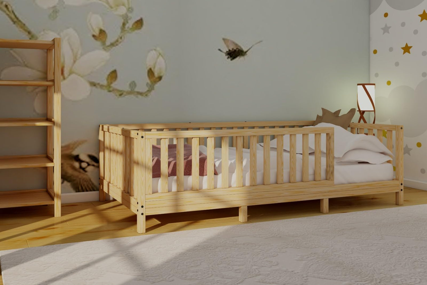 Montessori Floor Bed Designed with Open Front for Girls and Boys | Pine Wood Natural Solid Frame Bed Footed Model with Slats | Sturdy Designed Floor Bed Frame for Kids (Crib, Height : 23 Inches)