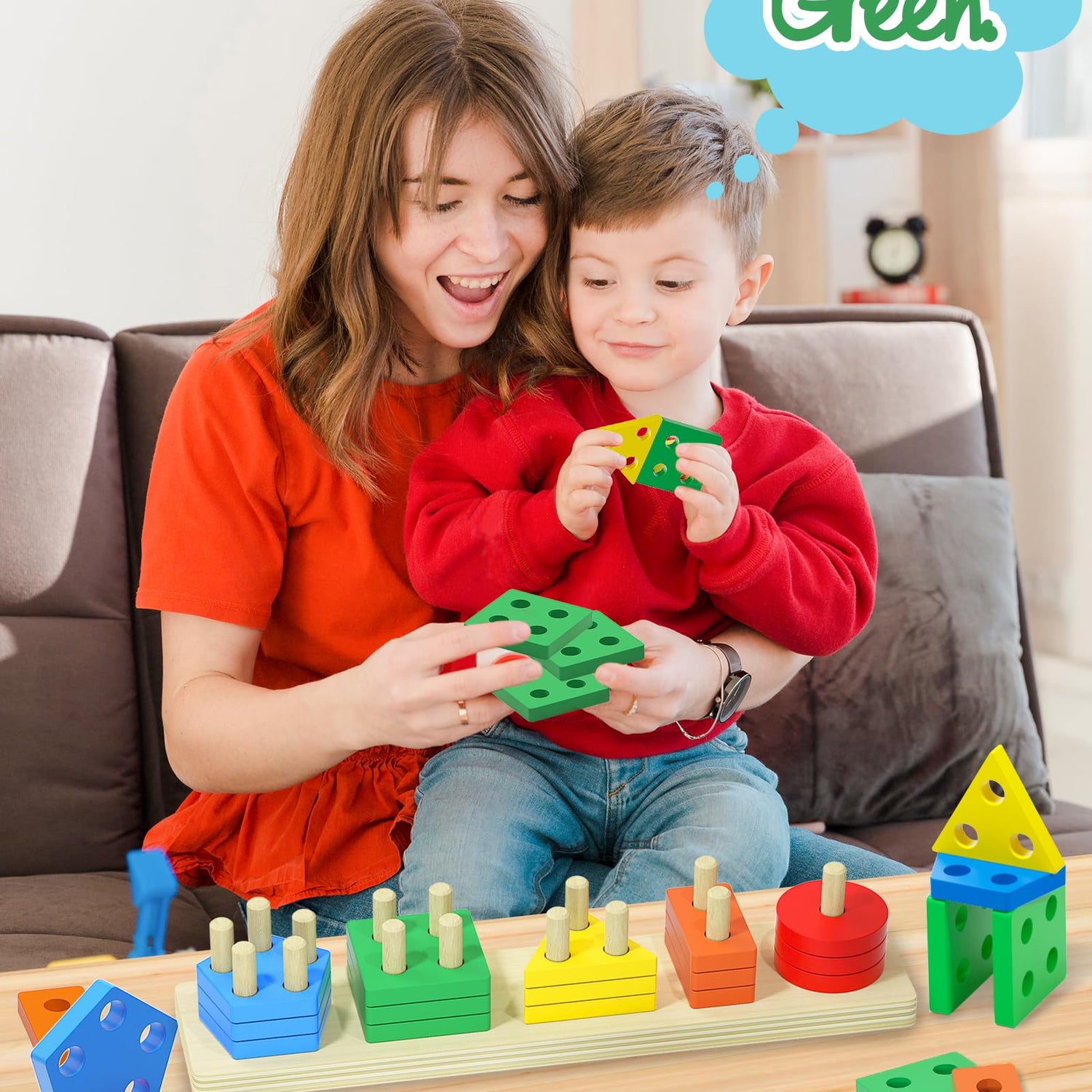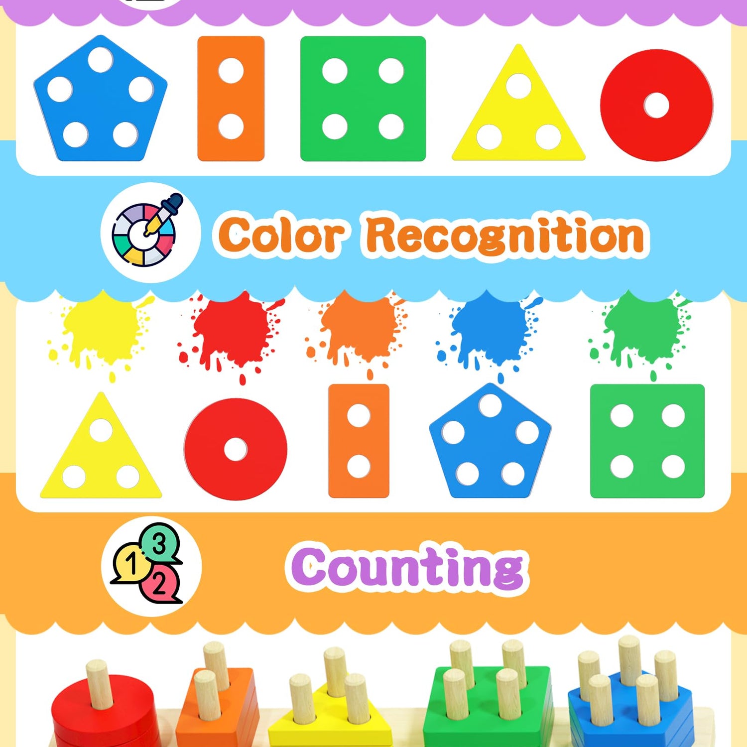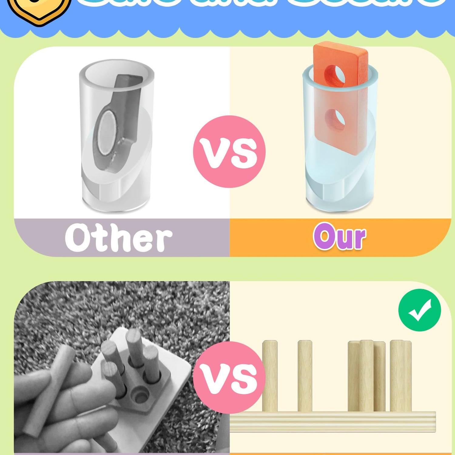 - Safe and high-quality toddler toys : We insist on using high quality wood raw materials to provide safe and fun toys for toddlers. The toddler learning toys with a moderate geometric size and smooth edges, can be grasped well by babies while protecting the baby's delicate skin. We also use the water-based paint, the color more vivid, non-toxic, odorless and anti-fade, for your baby safe and happy childhood.