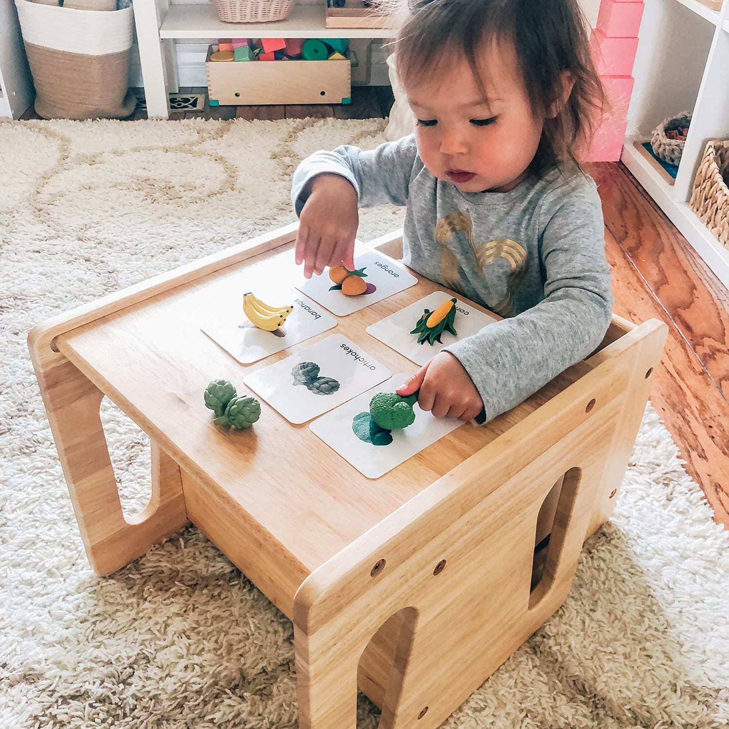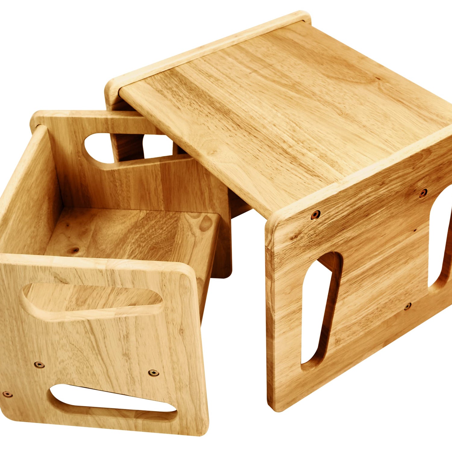Montessori Weaning Table and Chair Set - Solid Wooded Toddler Table - Cube Chairs for Toddlers - Real Hardwood - Kids Montessori Furniture