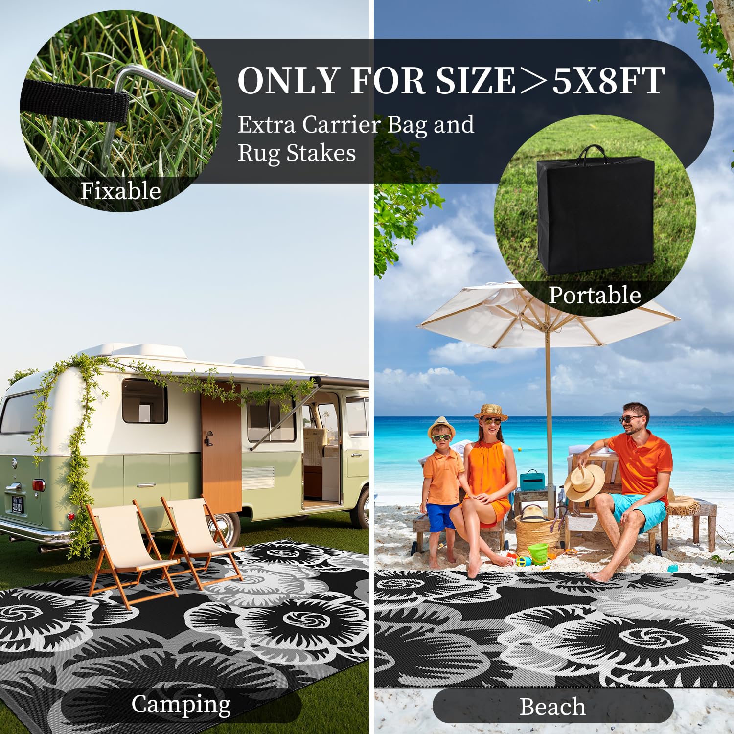 - Notes: For sizes LARGER than 5x8 ft, we provide extra carrier bag and rug stakes. It ensures both convenient portability and enhanced stability when using our lightweight rug outdoors. Colors may vary slightly from the images due to environmental factors or lighting.