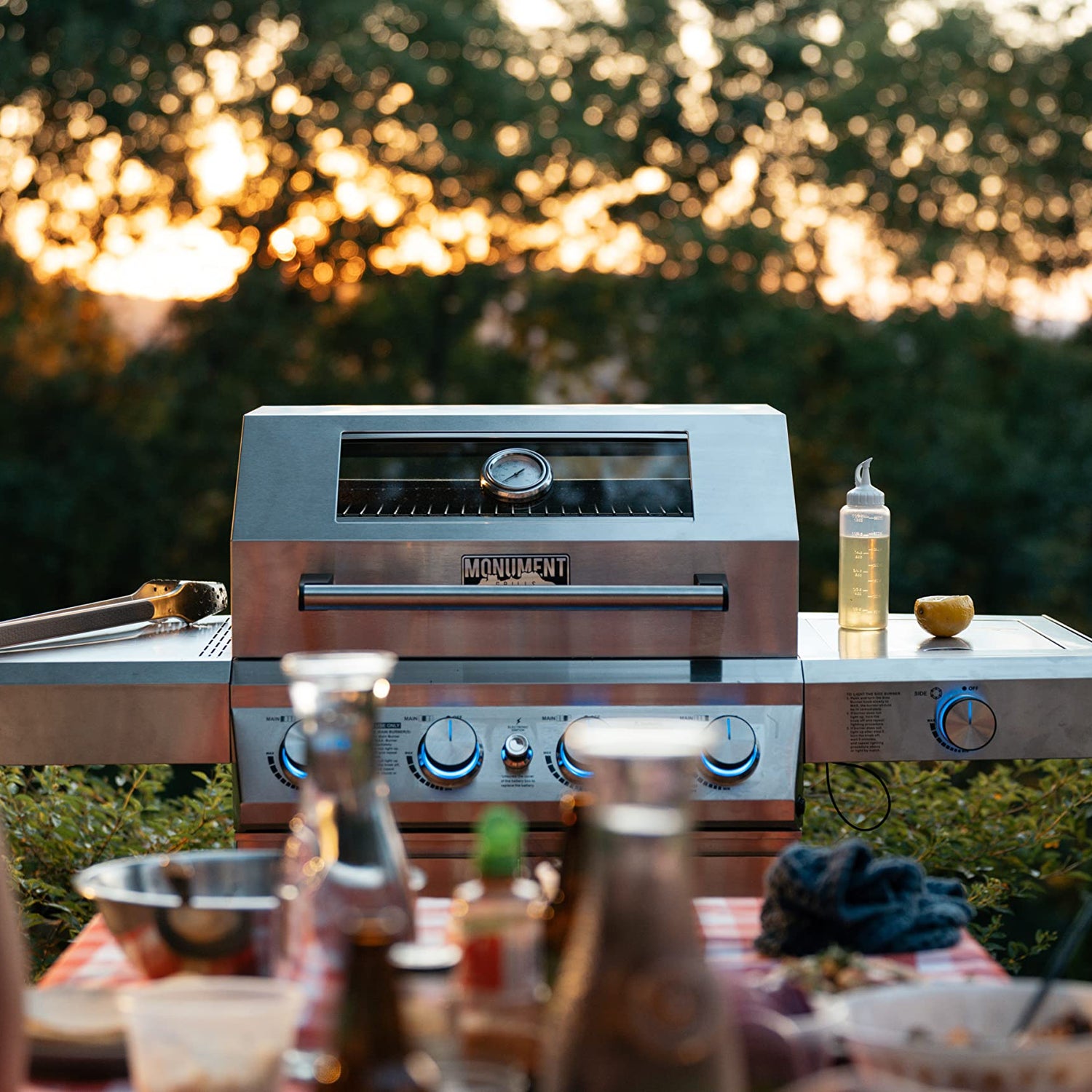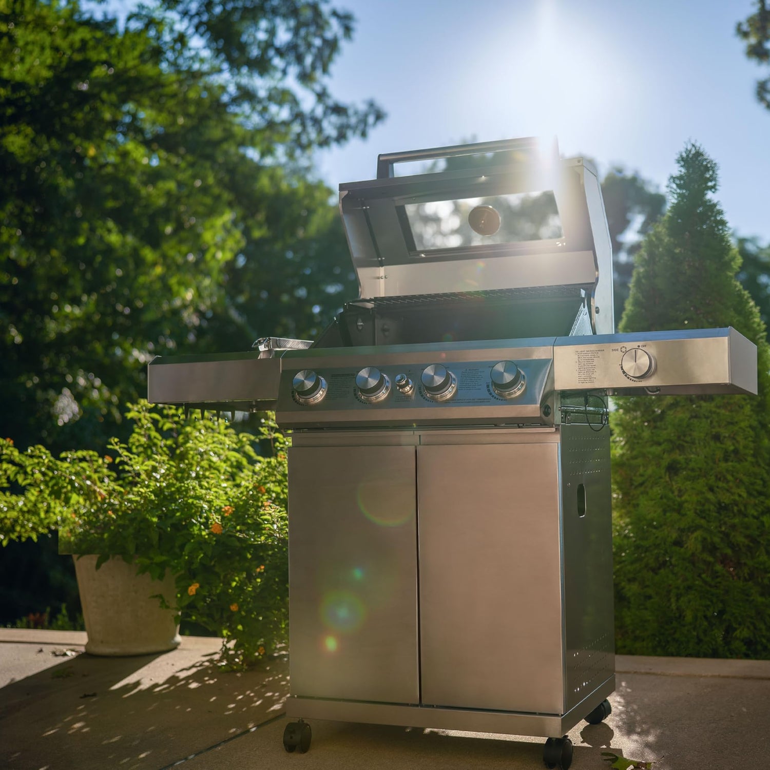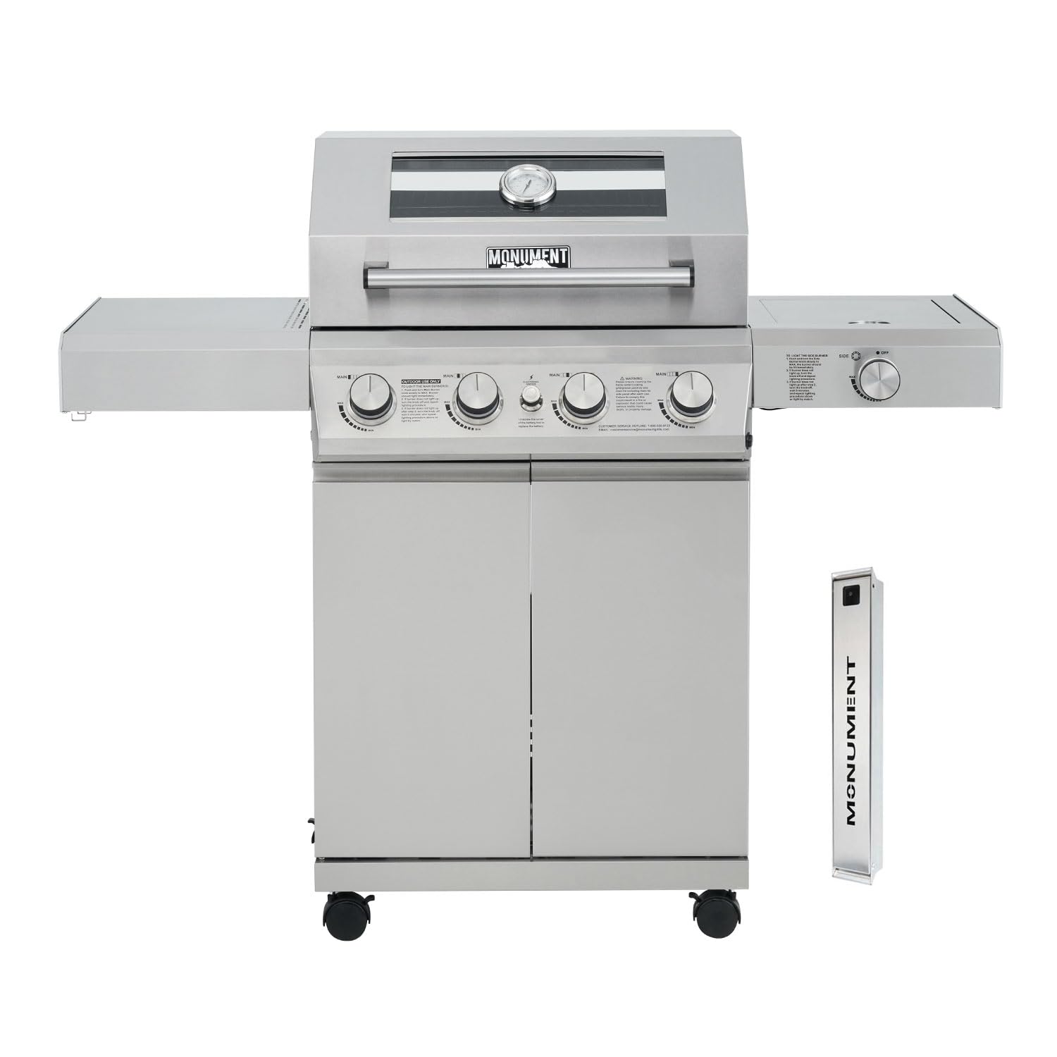 Monument Grills Larger 4-Burner Propane Gas Grills bbq Stainless Steel Heavy-Duty Cabinet Style with Knob Controls Side Burner Mesa 400m with Smoker Box (2 Items)