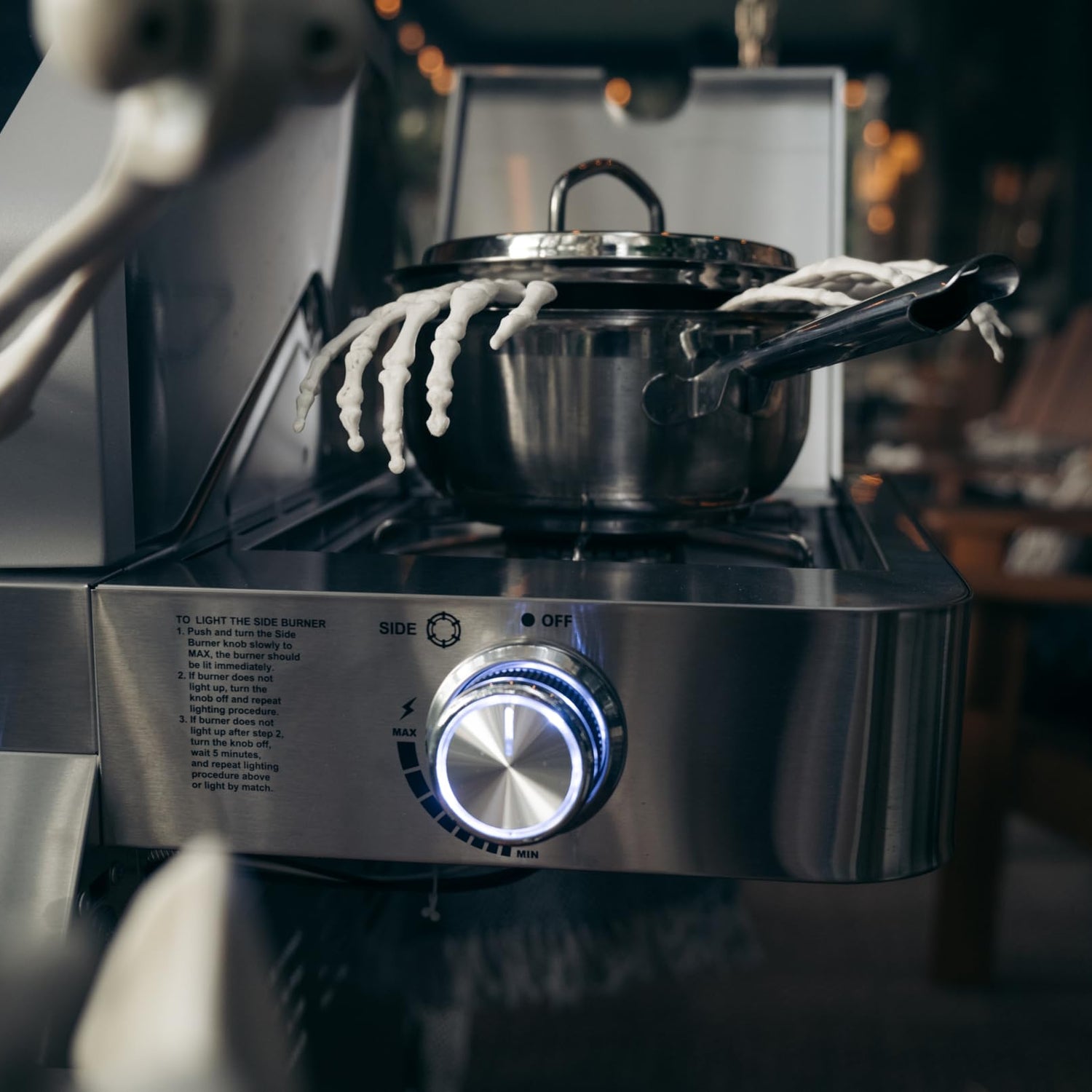 • STAINLESS STEEL BURNERS - Four main 304 stainless steel burners and one side burner with 60,000 BTU to deliver powerful heat and performance