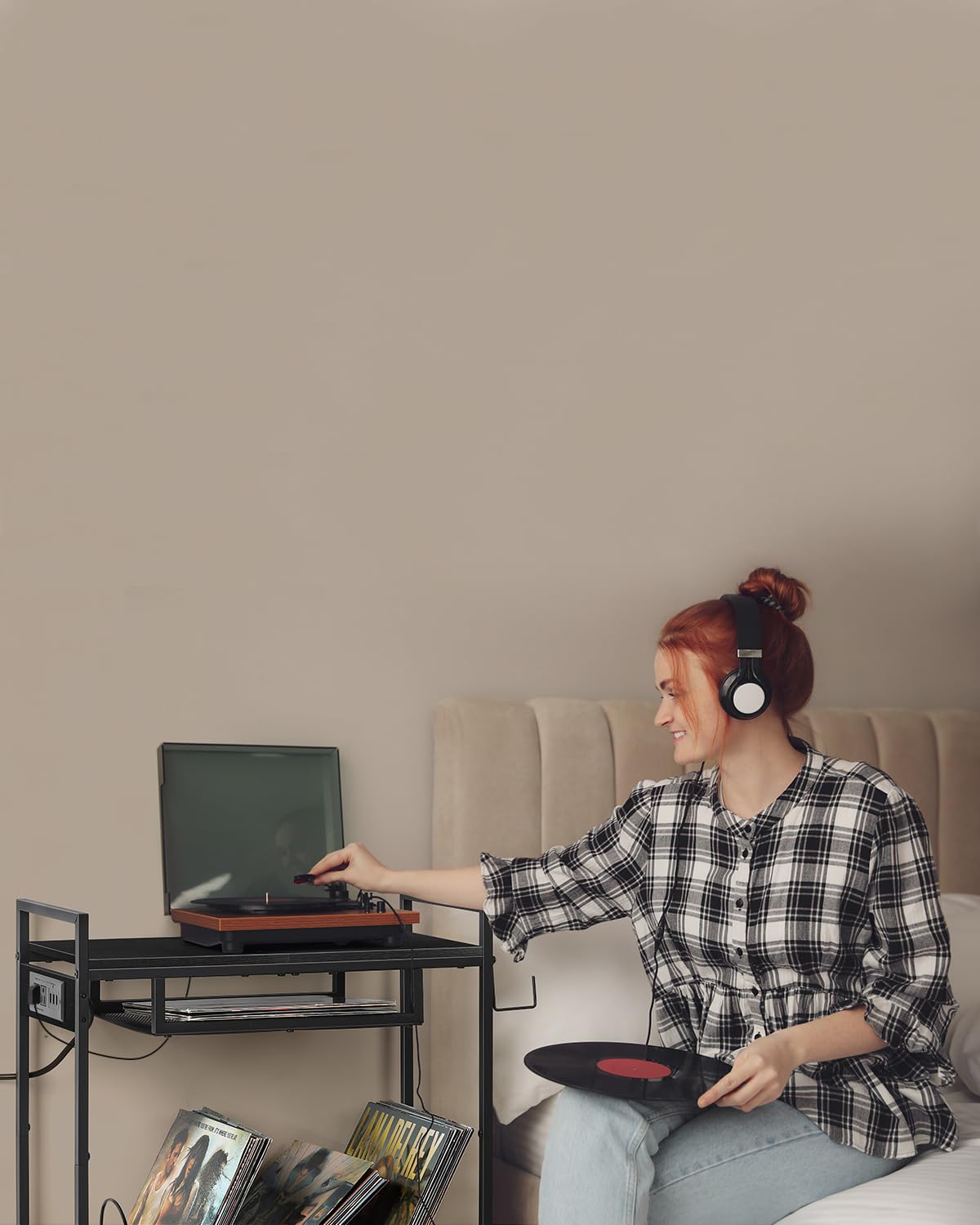 - 【Multi-purpose】This record player stand is also perfectly suited for use as a living room book stand / Book stand / Magazine holder / CD shelf / Display stand, or bedroom bedside table / nightstand with Charging Station and more.