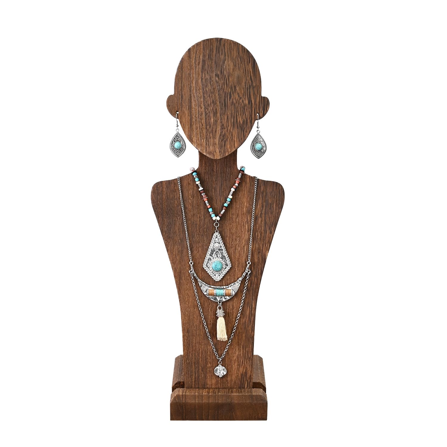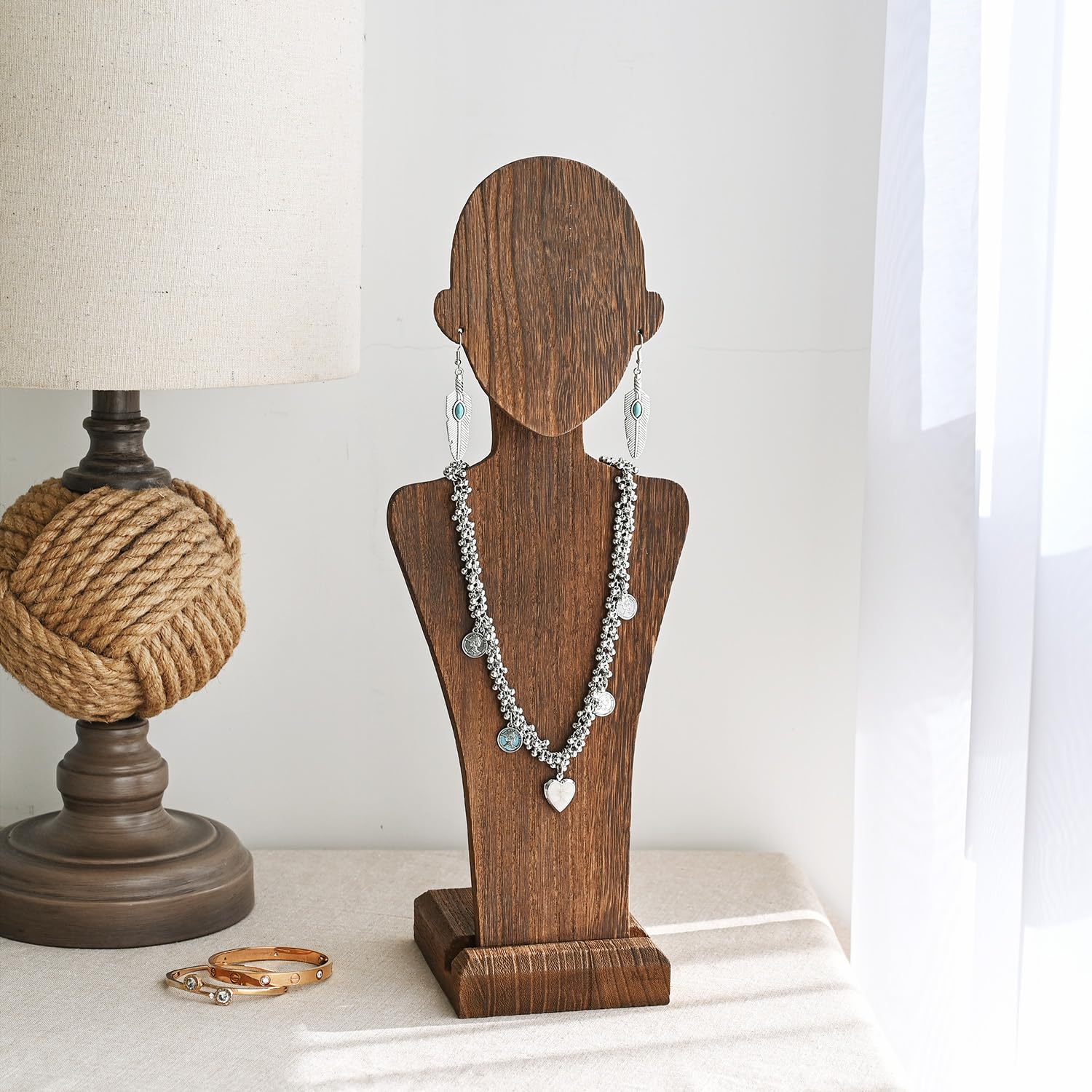 MOOCA Portable Wooden Mannequin Jewelry Stand, Jewelry Display Organizer for Earrings & Multiple Necklace, Brown Color