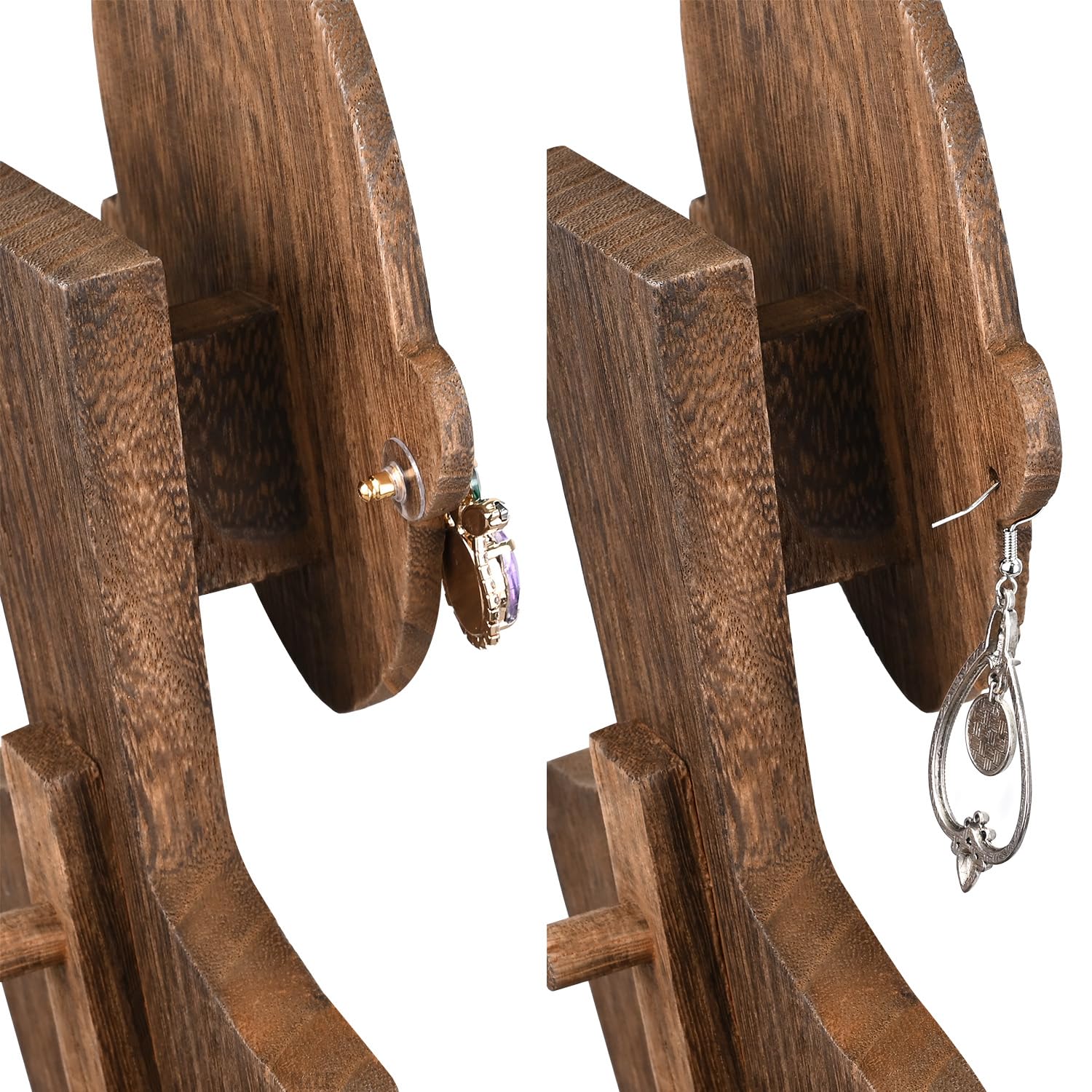 - JEWELRY DISPLAY STAND - Effortlessly hang a pair of earrings in the ready-made holes and elegantly exhibit multiple necklaces. The stand features 3 pegs at the back, providing versatility for accommodating necklaces up to 30 inches in length.