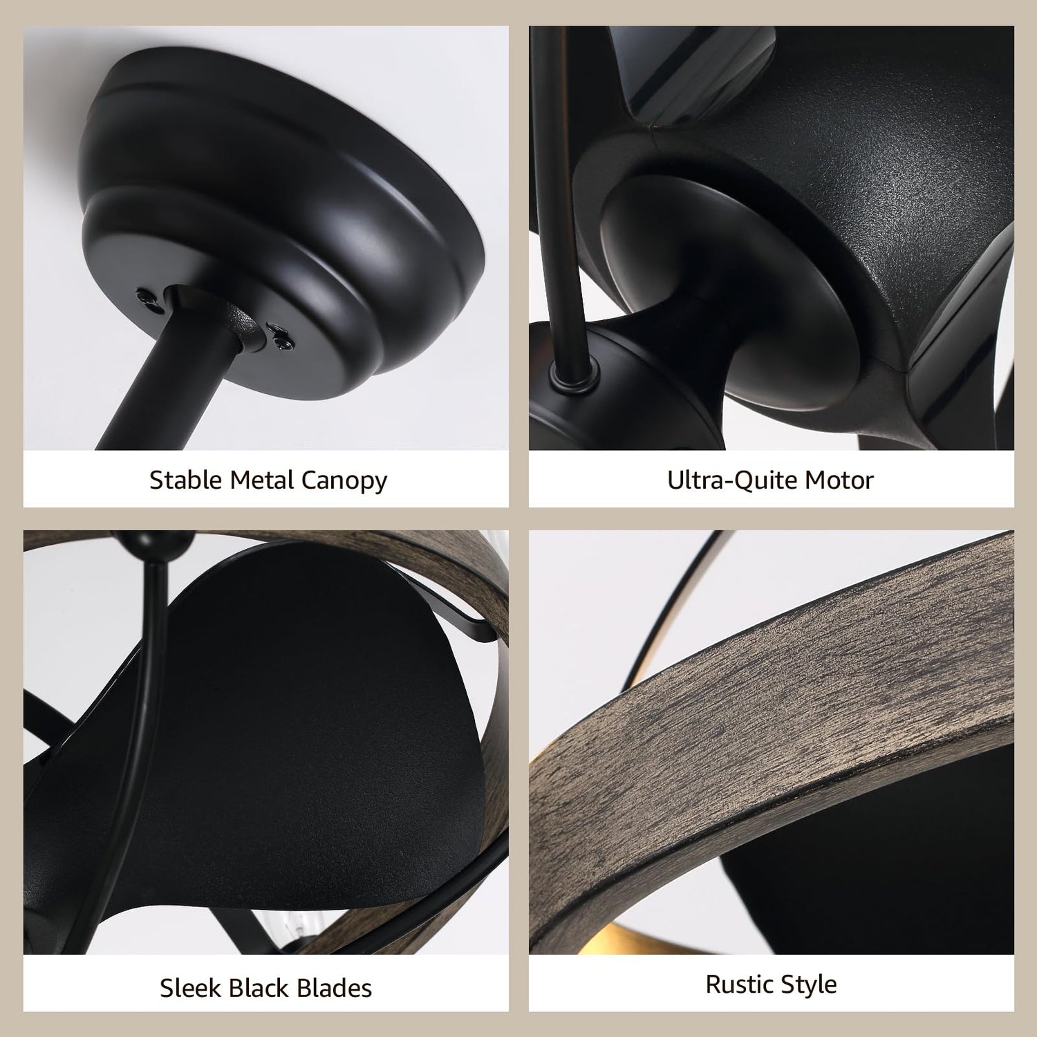 - 【Ceiling fan with remote】: The vintage ceiling fan with 6-speed adjustment and 3 fan timing options sleep shutdown about multi-function remote control. The fan and lights can be controlled separately, which can control your ceiling fan quickly and easily!