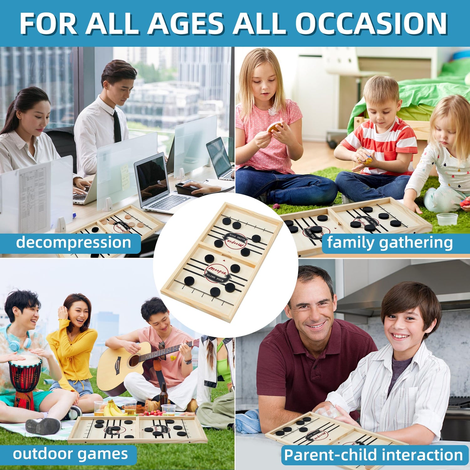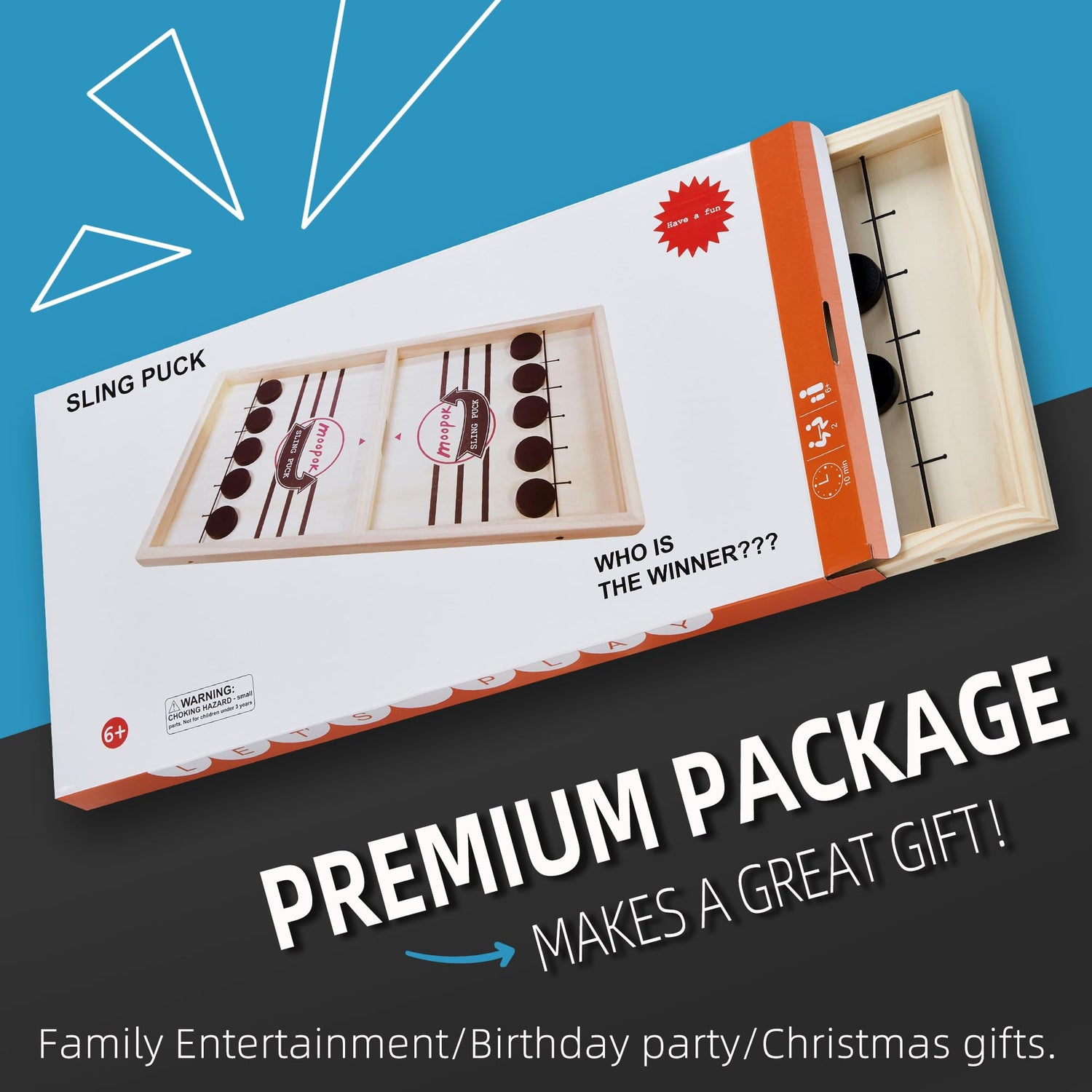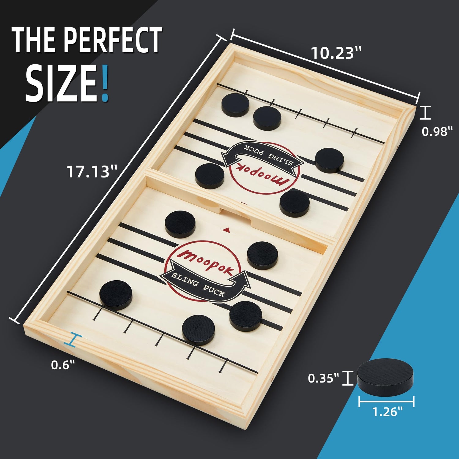 moopok Fast Sling Puck Game,Wooden Hockey Game.Desktop Battle 2in1 Super table Winner game,Adults and Kids Family Friend Funny Slingshot Game toys.Foosball Winner Board Game(Large)