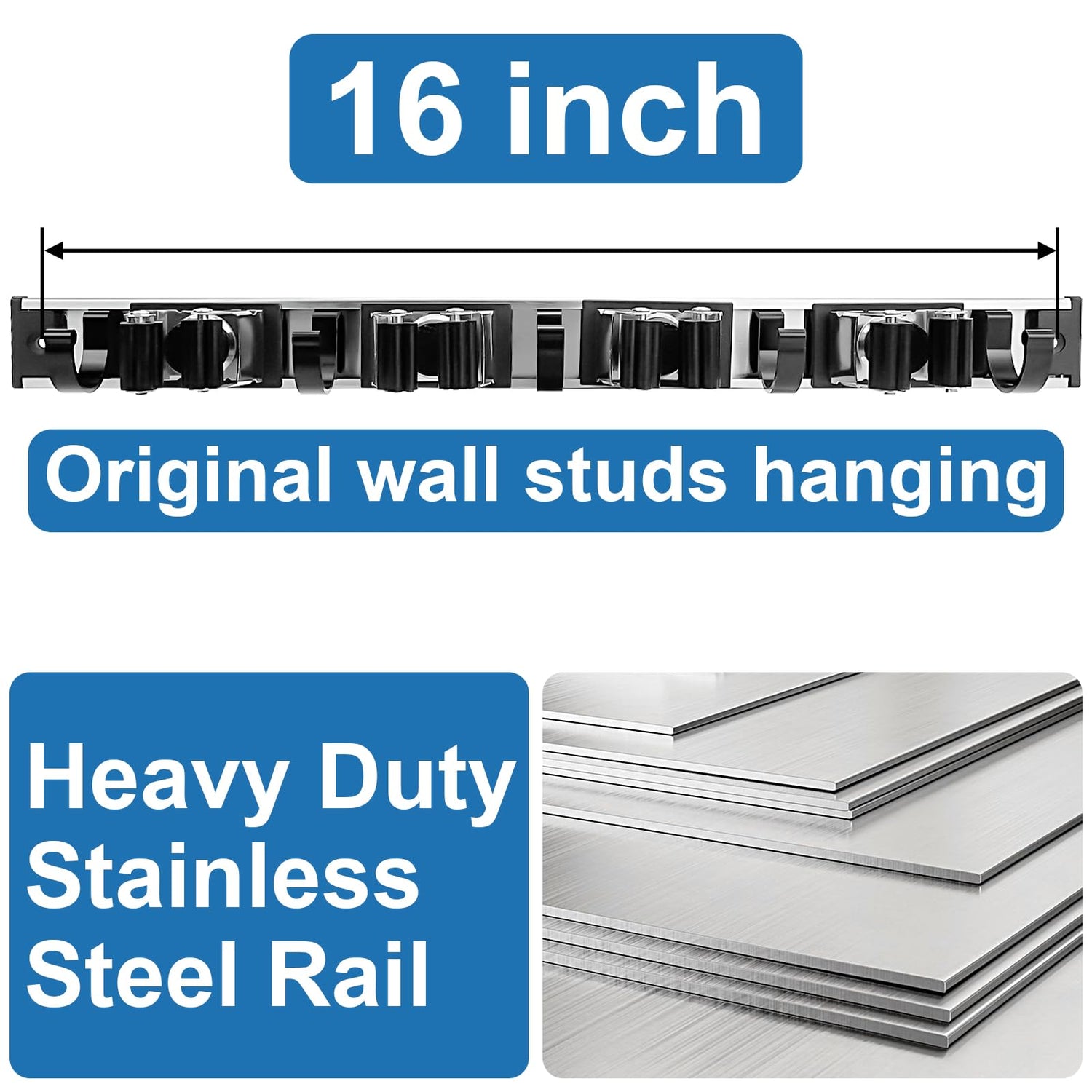 - 【Easy to Install Wall Broom Organizer】It's easy to mount this broom rack wall mount with included mounting hardware and instruction. It’s an excellent mop and broom rack to keep cleaning tools organized and easily accessible.