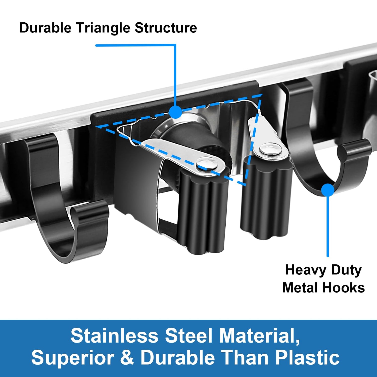 - 【Sturdy and Durable Broom Holder】Piyl broom holder wall mount is made of 304 Stainless Steel metal, more sturdy and durable than plastic broom hangers. Its max weight capicity up to 200 pounds, this wall broom holder provides exceptional storage and organization for laundry room, bathroom, closet, utility room, garage, garden and ect.