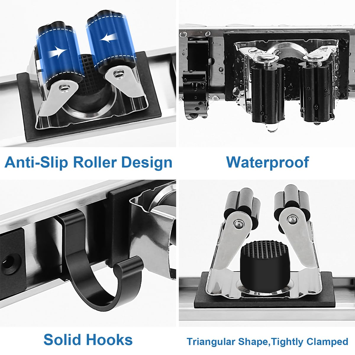 - 【Adjustable Mop Holder】Our mop holder wall mount designed with sliding clips and hooks, and non-slip firm grip is strong enough to hold broom/mop handles well in place. You can easy to insert and remove the handles with one hand.