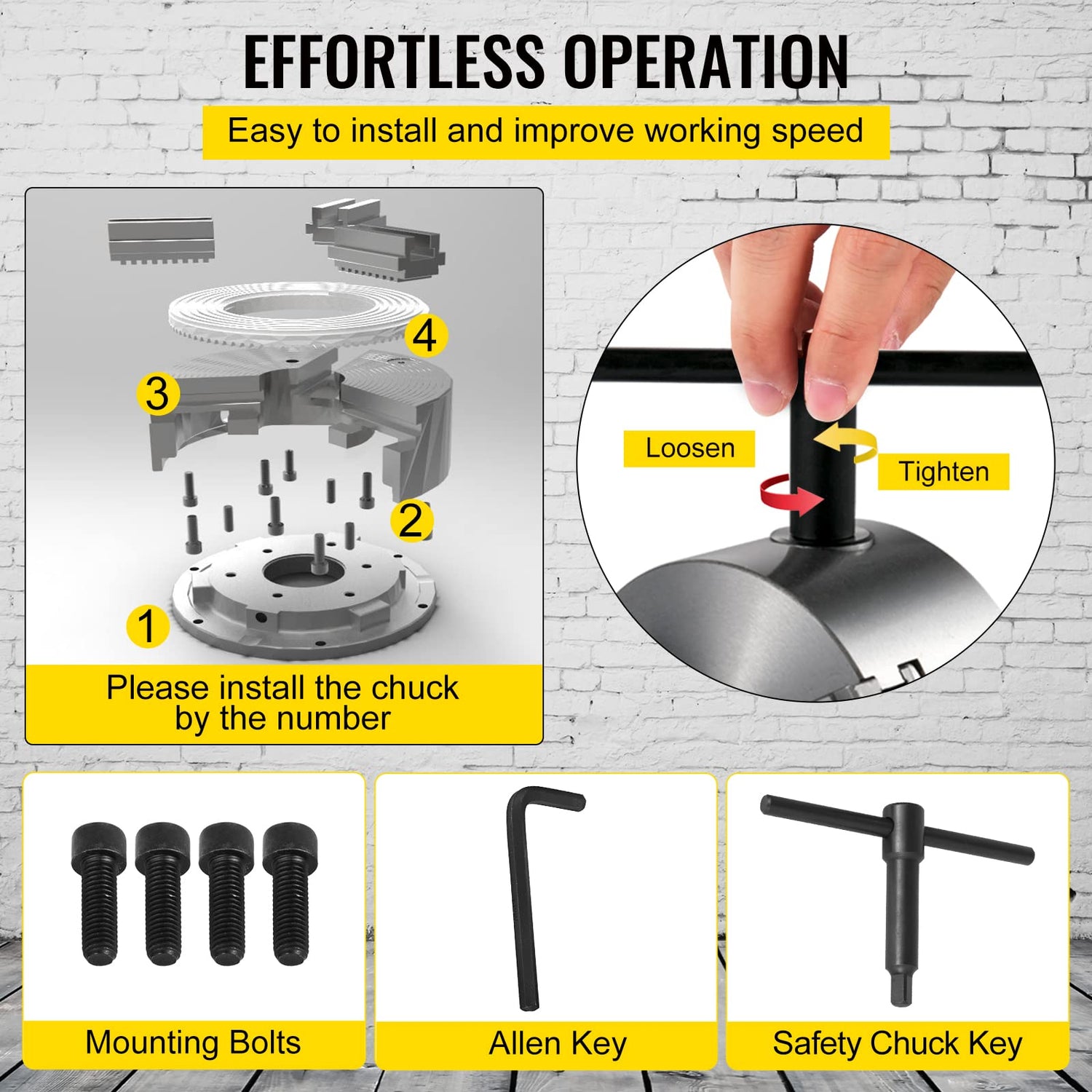 - 【ENHANCED FLEXIBILITY】 - The T chuck key of the lathe part allows the installation of various workpieces. And easy operation reduces changeover time for your convenience.