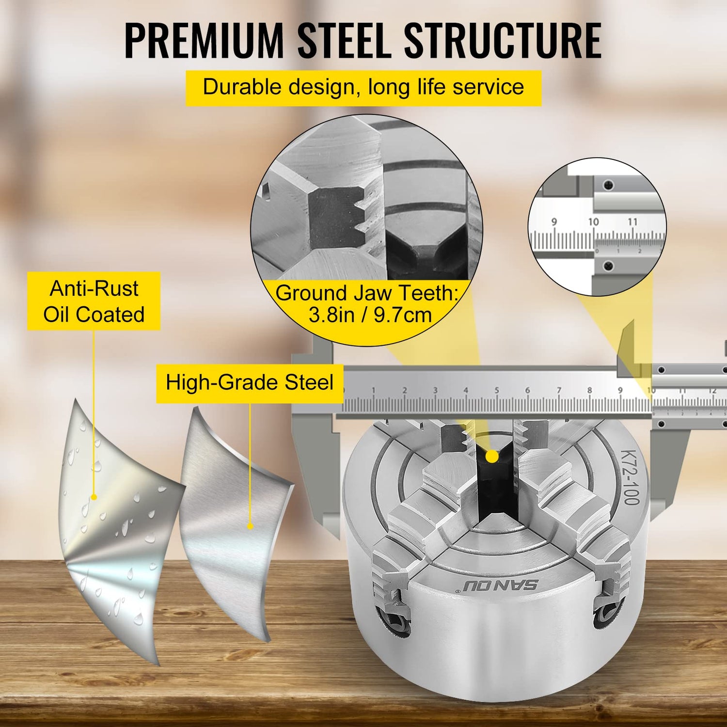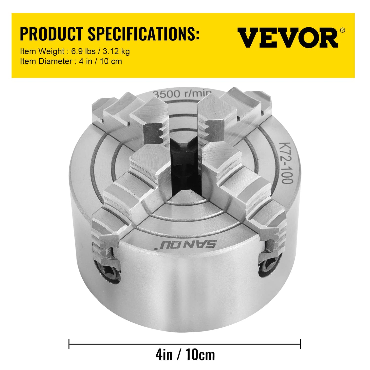- 【PREMIUM MATERIAL】 - Diameter: 100 mm (3.93 in). The 4-jaw mini lathe chuck body is made of cast iron that has passed rigorous quality tests. So it is rigid and durable.