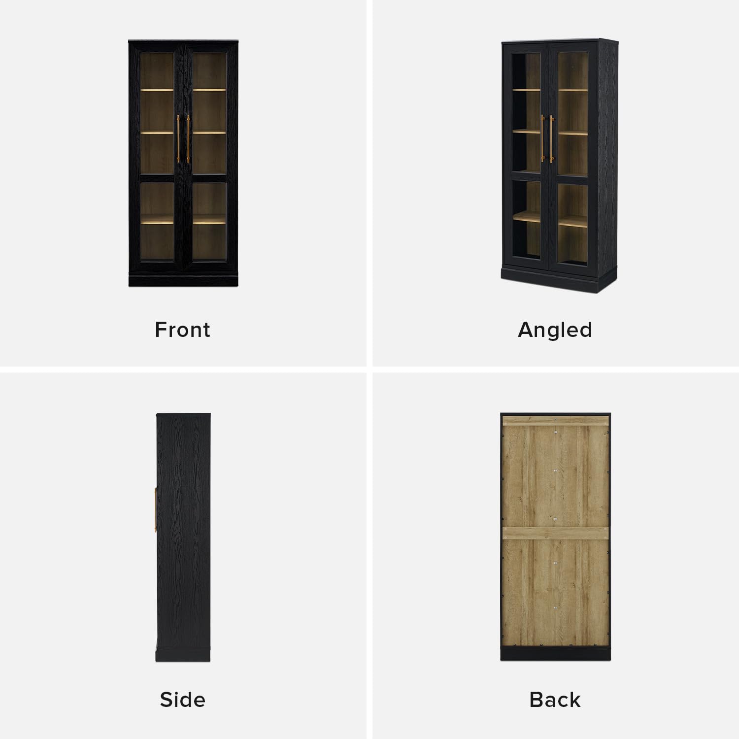 mopio Blake Tall Display Cabinet, Kitchen Buffet Pantry Cupboard, Trophy Display Case, Storage Cabinet Scratch Resistant Acrylic, Modern Farmhouse Curio Organizer (Black Oak Acrylic, Single)