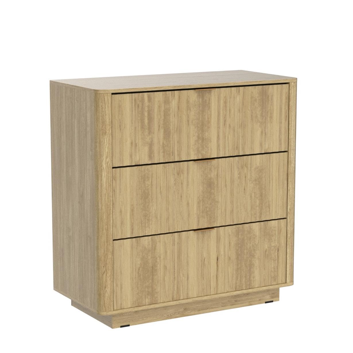 mopio Brooklyn 3 Drawer Dresser for Bedroom, Mid Century Modern Chest of Drawers, Wood Tall Nightstand, Waveform Fluted Side Table, Enhanced Safety, ASTM F2057-23 Sturdy Compliant (Oak)
