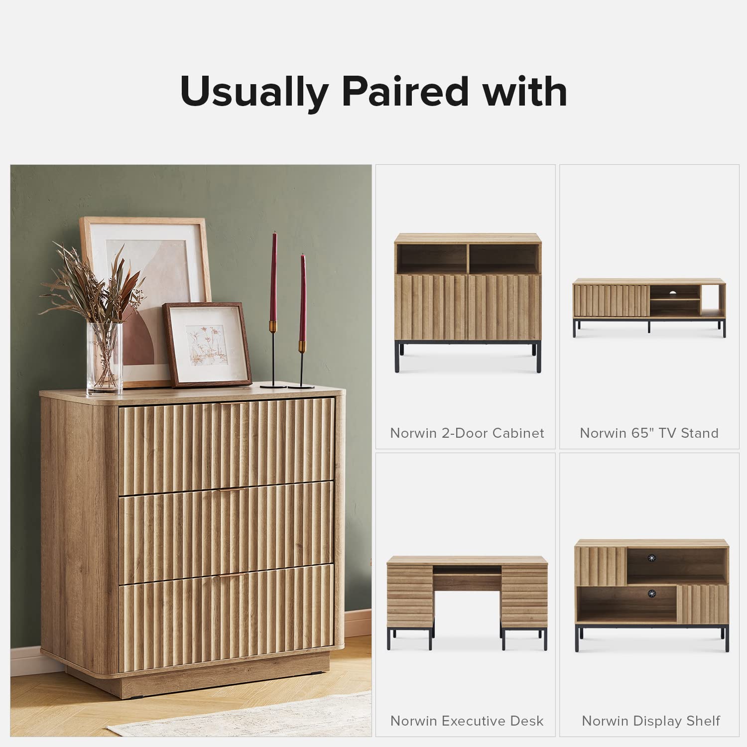 - Design: Fabricated through a special technology, the fluted panel design is unique and elegant. The rounded corners also soften the look of the streamlined frame and provide an environment safe for little ones. Complete with aluminum handles, it provides the drawers with durability to last for a long time