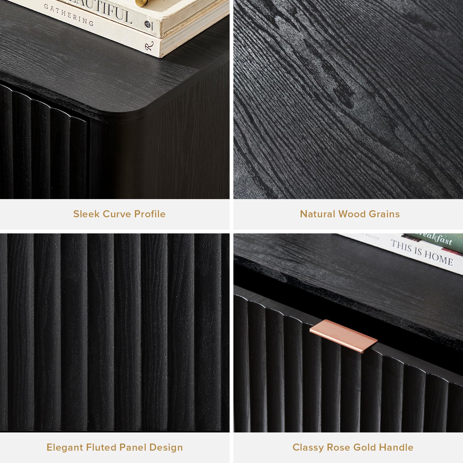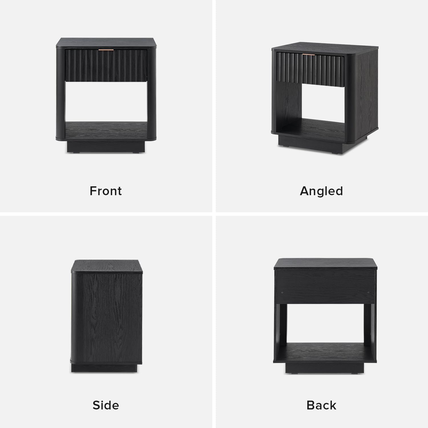 mopio Brooklyn Night Stand, Modern Farmhouse Nightstand, Small Side Table, Bedside Table with Drawer, End Table with Storage, Fluted Panel, Curved Profile (Black Oak, Single)