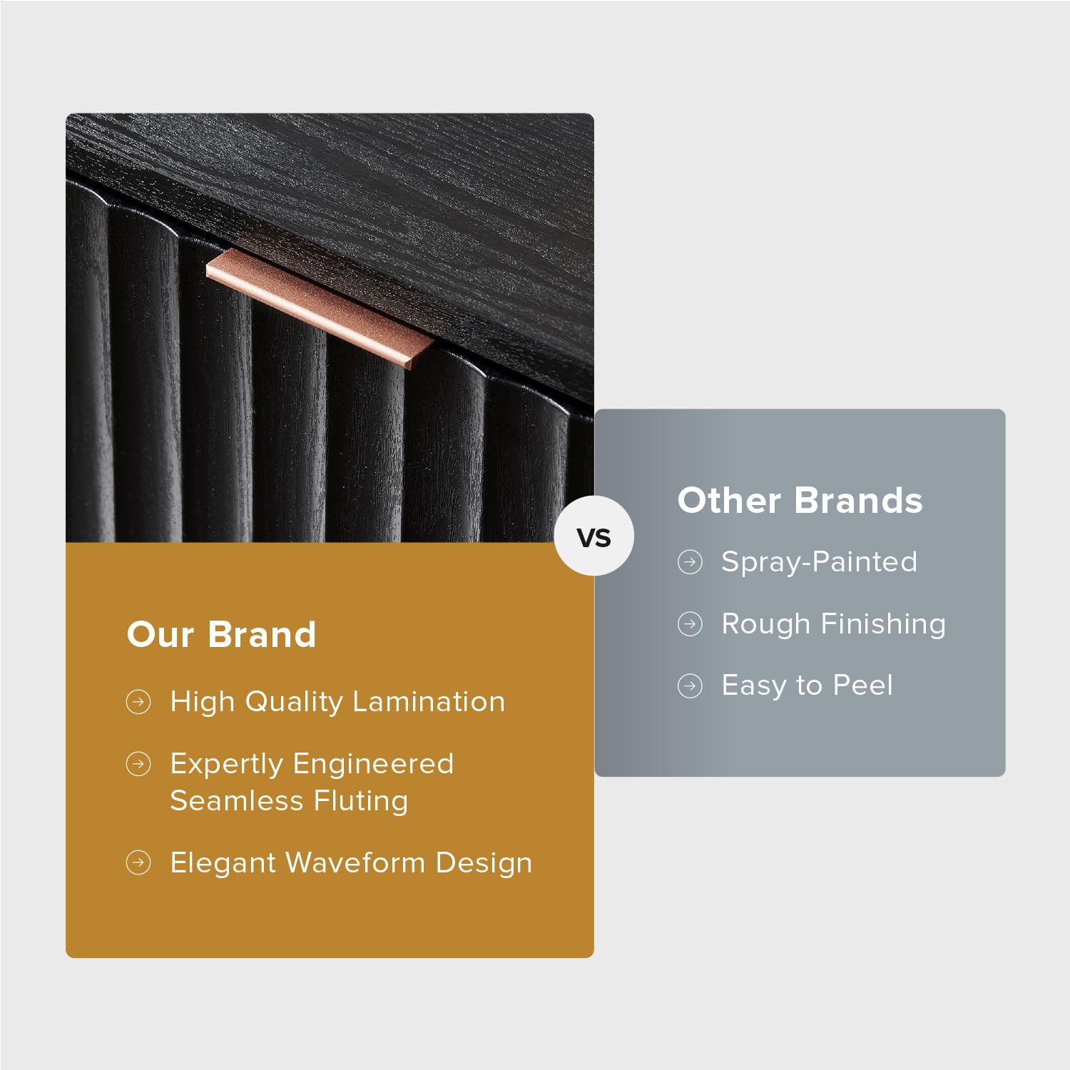 - Unique and Elegant Design: Specially crafted, the distinctive waveform fluted panel is a fusion of art deco and mid-century modern styles, with rounded corners that not only enhance the sleek frame's appearance but also ensure safety, especially for children. The rose gold aluminum handle provides an added touch of class