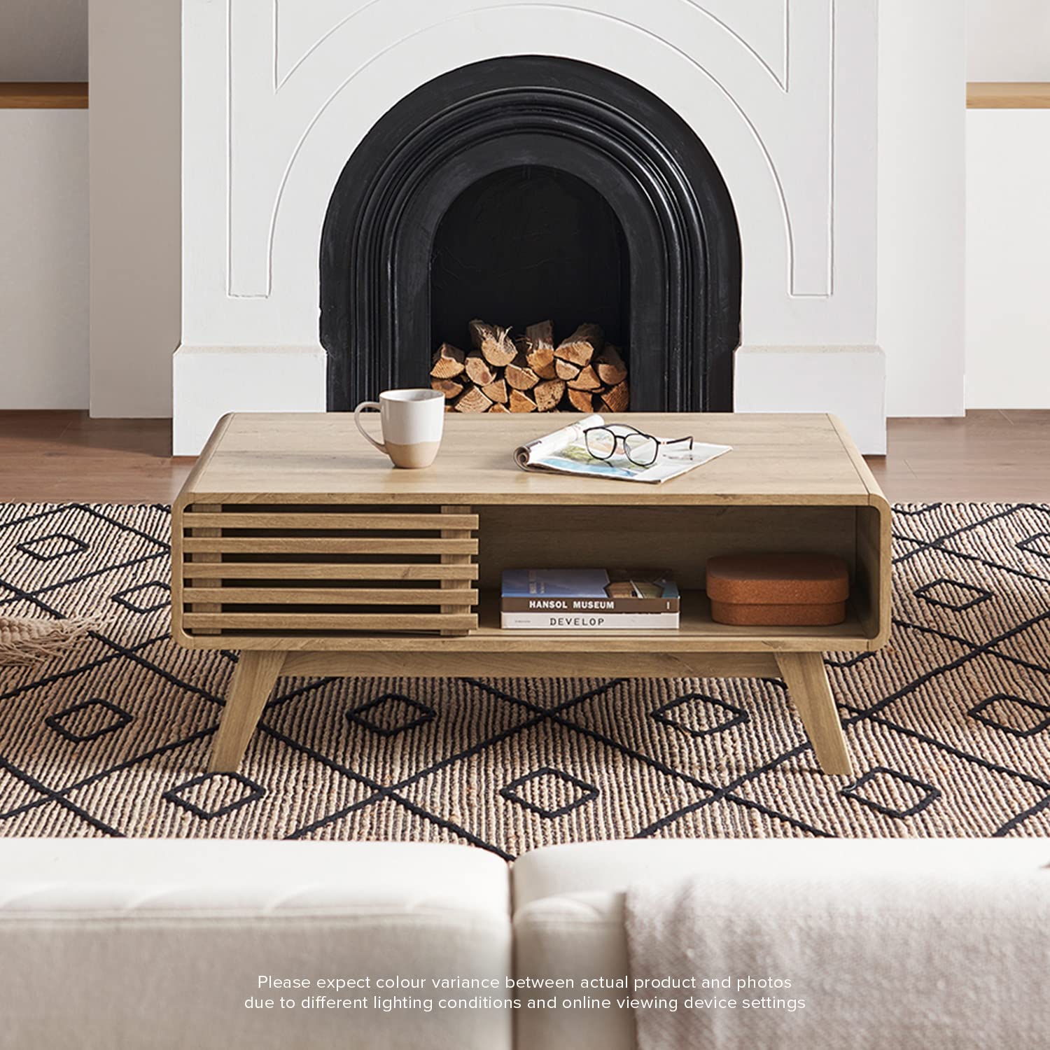 - Design: Mid-Century modern coffee table with 4 separate compartments for your storage needs. The perfect centerpiece for your living room