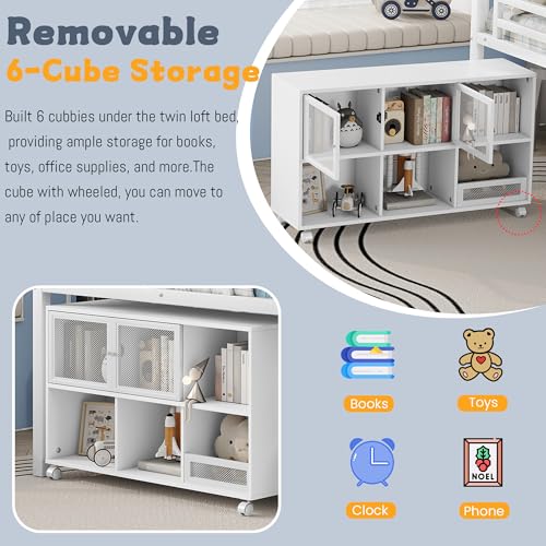 - 【Low Loft Bed with Storage 】Built 6 cubbies under the loft bed twin size kids, providing ample storage for books, toys, office supplies, and more.this space-saving shelf keeps your essentials neatly stored and within reach. The cube with wheeled, you can move to any of place you want.