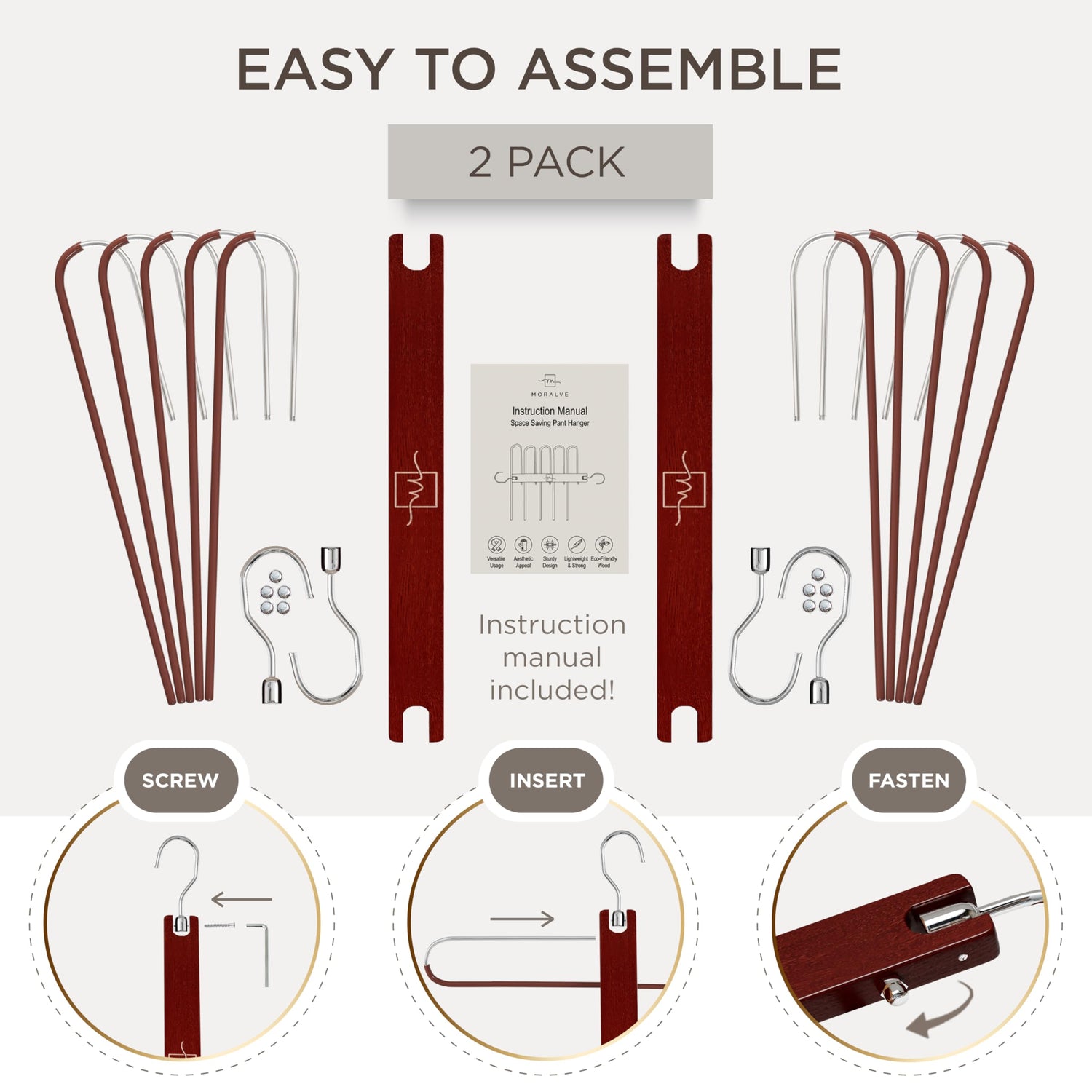 - CREATE A CLEAN ORGANIZED CLOSET - With our pants hanging rack take back more space in your closet and make the change today for a more organized lifestyle. Our 2 pack of hangers give you 2 times the organizational power to transform your closet into a clutter free haven you can be proud of.