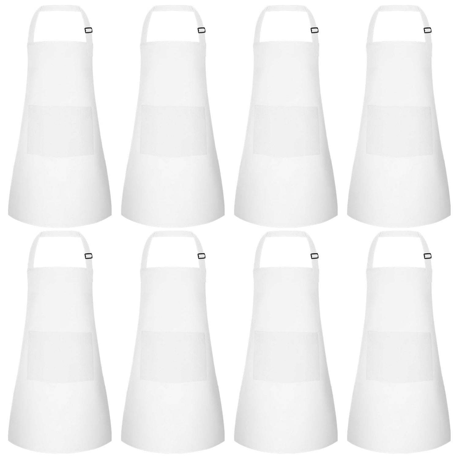 Morcheiong 8 Pack Adjustable Kids Apron Bulk with 2 Pockets Toddler Apron Kids Painting Aprons for Cooking Baking Painting Boys Girls (White)