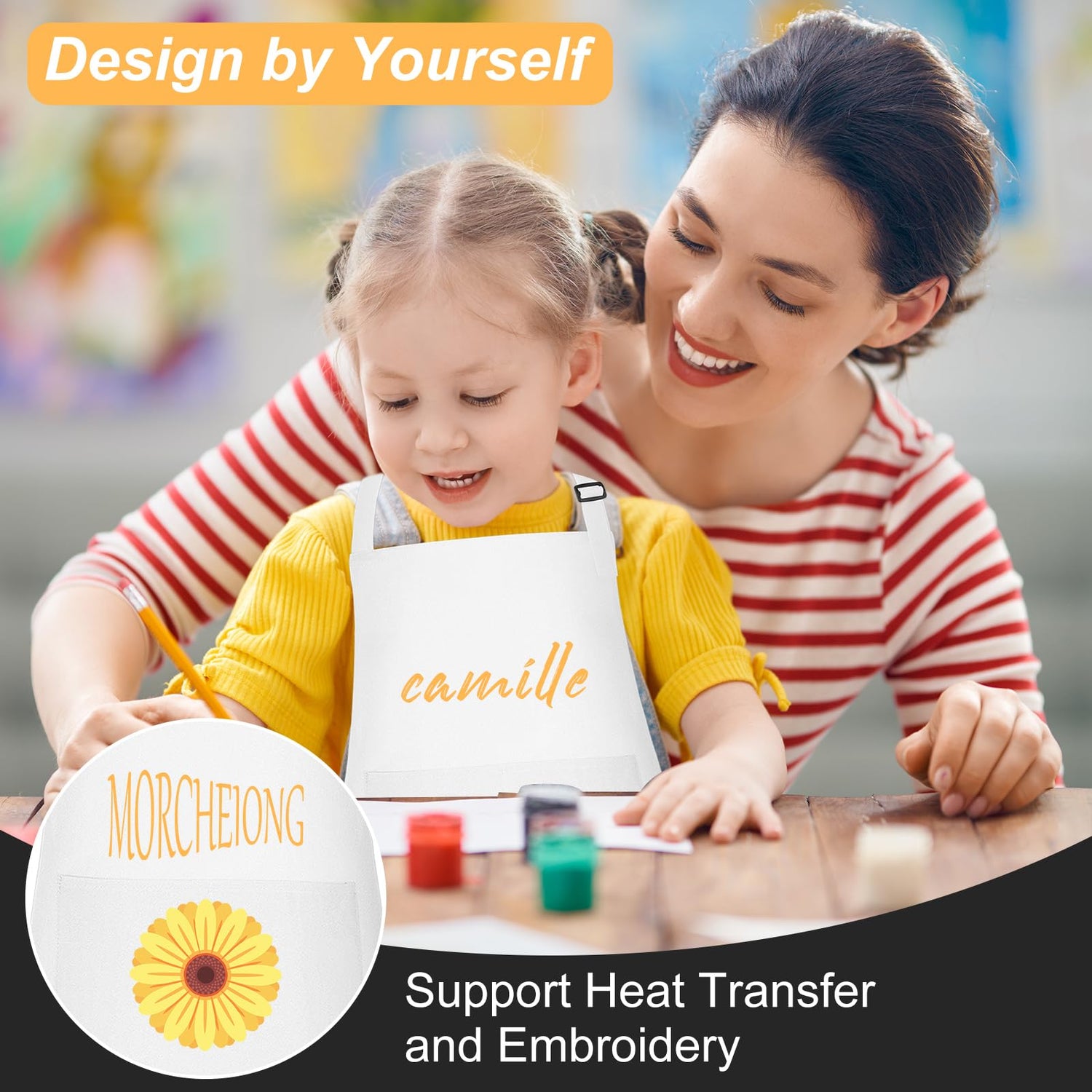 • Great Material: The kids art apron is made of polyester, which is comfortable, breathable, lightweight and sturdy, not easy to break or fade. These paint aprons for kids are easy to clean, you can not only decorate your aprons with markers, ironing, or embroidery, but also you can use heat transfer to design a special apron for your kids