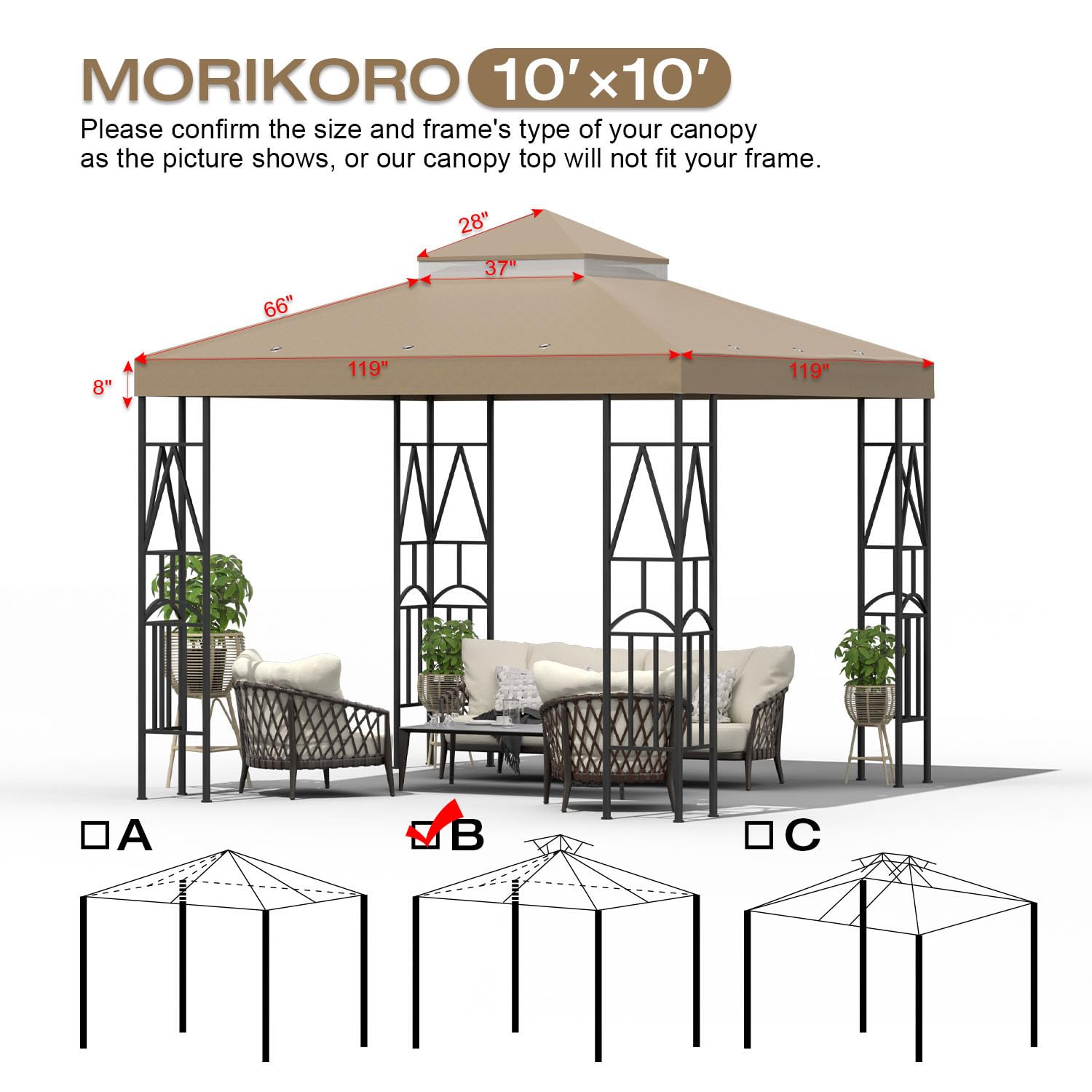 Morikoro 10x10 Canopy Replacement Top Double Tiered Gazebo Cover for Yard, Patio & Garden Durable Sunshade Replacement(Khaki)