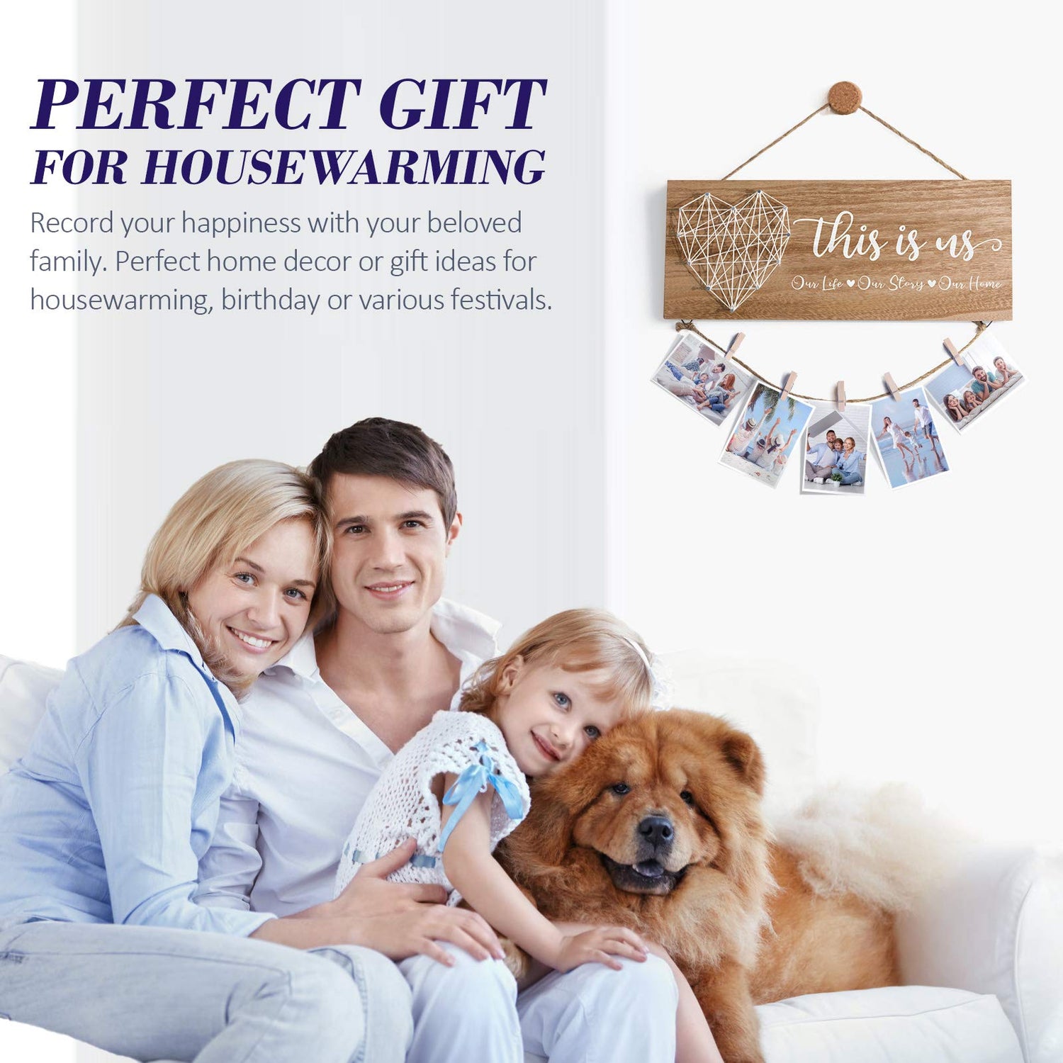 Mothers Day Gifts for Mom Women, Housewarming Gifts New Home Wall Decor Sign, This Is Us Family Picture Frame Wedding Gifts for Couples Farmhouse Rustic Wood Hanging Photo Holder New Homeowner Gifts