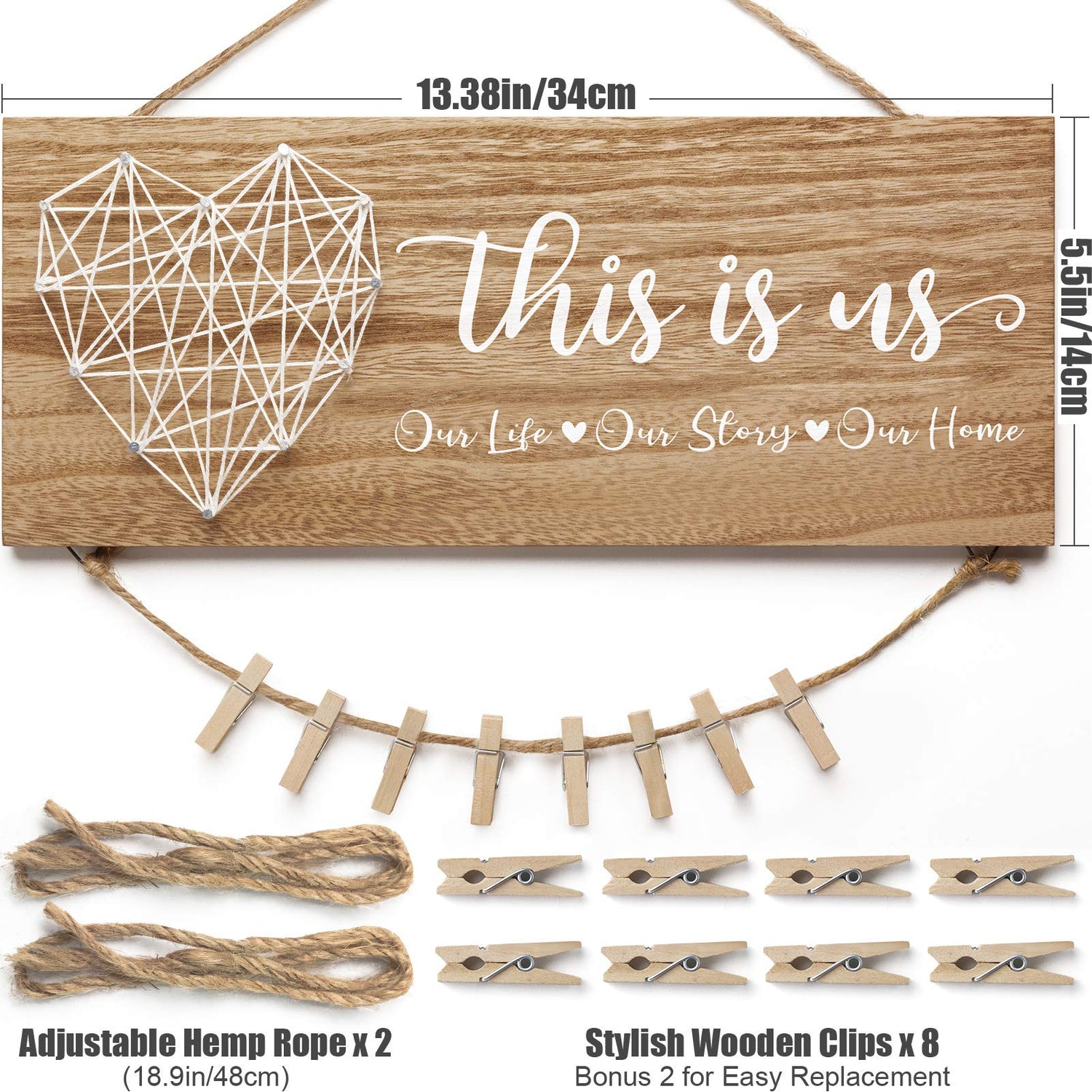 - 👍VIVID & READABLE PRINTING: Unlike other model with unreadable gapped out words in the market, the printing of our housewarming photo frame is vivid and clear, no cutting words for easy reading. This exquisite picture frame new home photo holder is carefully designed to hang photos with 8 Clips(other models only offer 6 Clips) to record happiness and decorate your home. New house family gifts this is us frame is an ideal Christmas gifts for mom women, couples gifts, new home gifts for home!