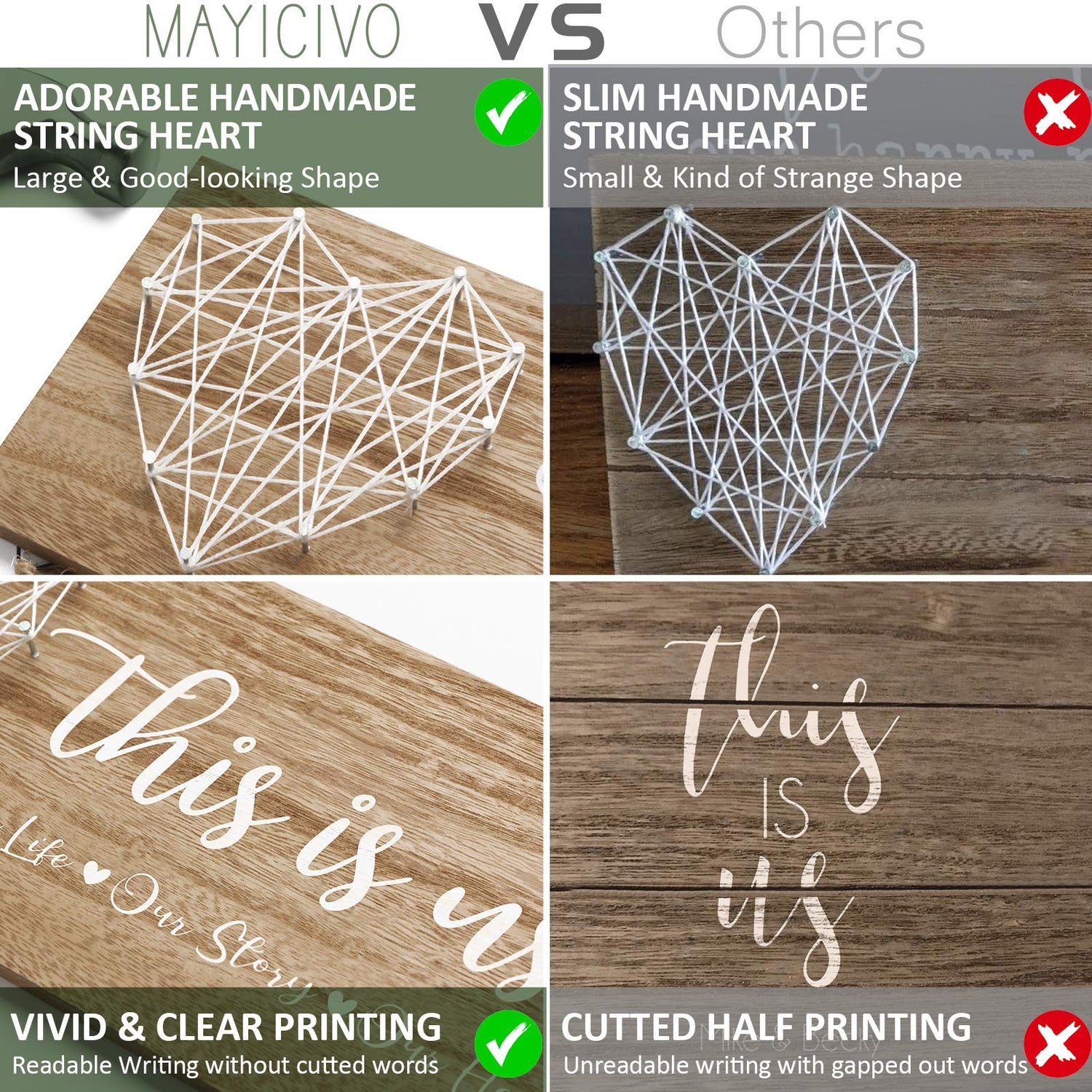 - 📸EXQUISITE PHOTO HOLDER: Top Mom Mothers Day Gifts Housewarming Gifts - MAYICIVO Farmhouse Rustic picture frame Family Picture Holder Home Sign is made of MDF wood in warm color with fine craftsmanship & handmade sweet string heart art design with cotton lines, rustic, unbreakable, long-lasting, cute and adorable, adding a feeling of warmth and familiarity to any wall or home! Perfect Valentines day gifts for him her or Mothers Day gifts for mom women, engagement wedding gifts for couples!