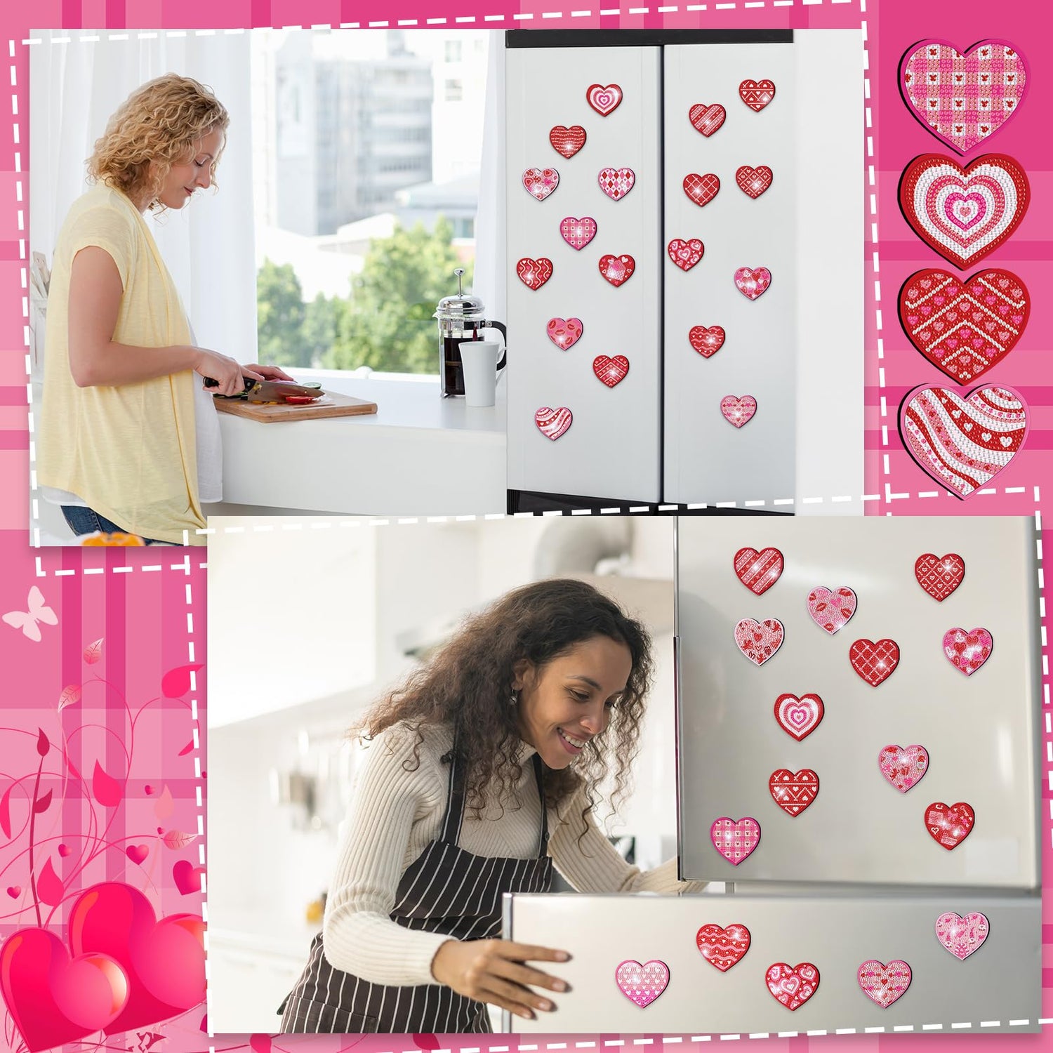 - Valentine's Day Diamond Pattern Design: the fridge diamond art magnets feature stylish heart and Valentines designs that add a different touch of style to your metal surfaces; Whether it's for the love season or all year round, these magnets are sure to add charm and character to your space