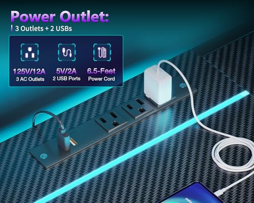- 【Integrated Charging Hub】L desk stays powered up without leaving your station: Built-in power strip includes 3 AC outlets and 2 USB charging ports right at desktop level. Charge phones, controllers, and headsets mid-game using the generous 6.5ft cord. Place your desk freely without outlet constraints - perfect for corner setups where power access is limited.