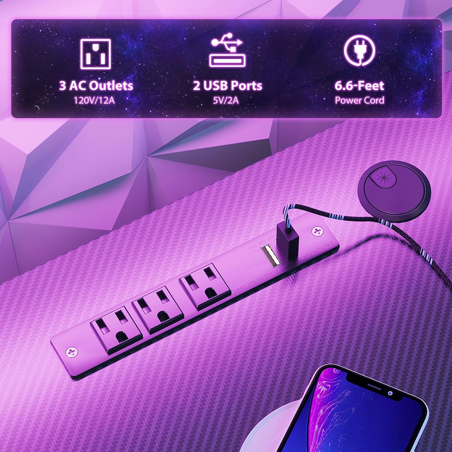 - Power & LED Lights: MOTPK gaming computer desk includes a built-in power outlet with 3 Outlets & 2 USB ports to charge your devices. Also, you can use the LED Lights to vary the 20 light modes to bring more gaming atmosphere to your space.