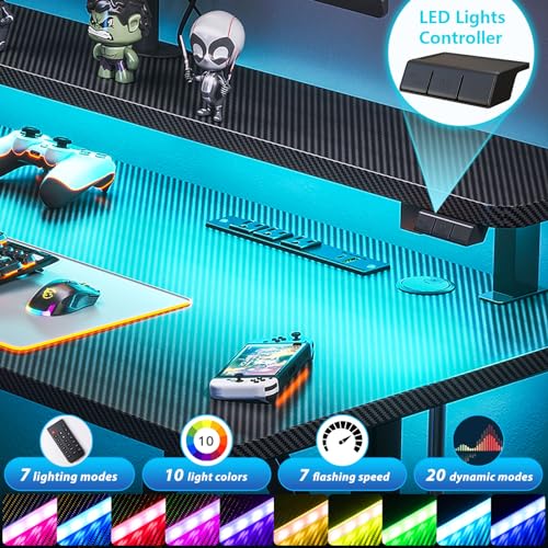 - Power & LED Lights: MOTPK gaming computer desk includes a built-in power outlet with 3 Outlets & 1 USB Port & 1 Type-C Port to charge your devices. Also, you can use the LED Lights to vary the 20 light modes to bring more gaming atmosphere to your space.