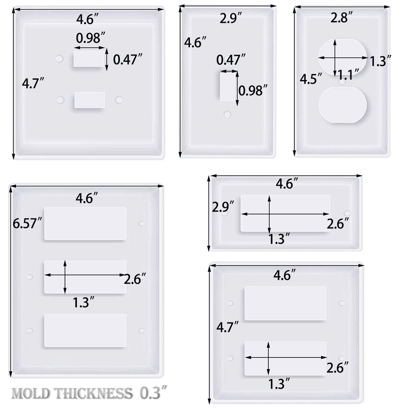 - CREATIVE DESIGN: Light switch cover resin mold set they fit standard plugs just perfectly, make personalized plug cover custom decorated boards. 6 designs meet a wide variety of switches Please check the size before buying.