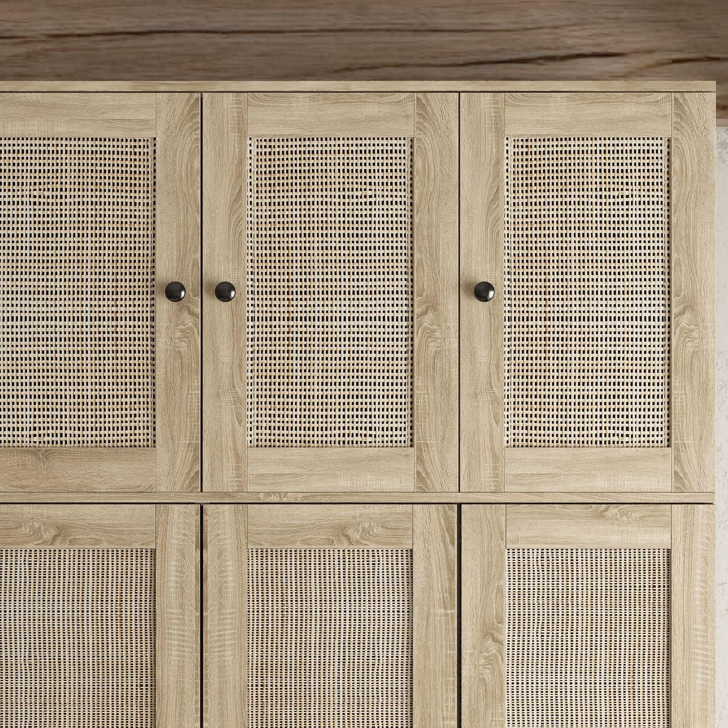 MOUMON 4 Rattan Door Wardrobe with Shelves and Drawers, Armoire Wardrobe with 2 Clothing Rods, Top Storage, Closet for Bedroom Oak 19" D x 59”W x 94.5”H