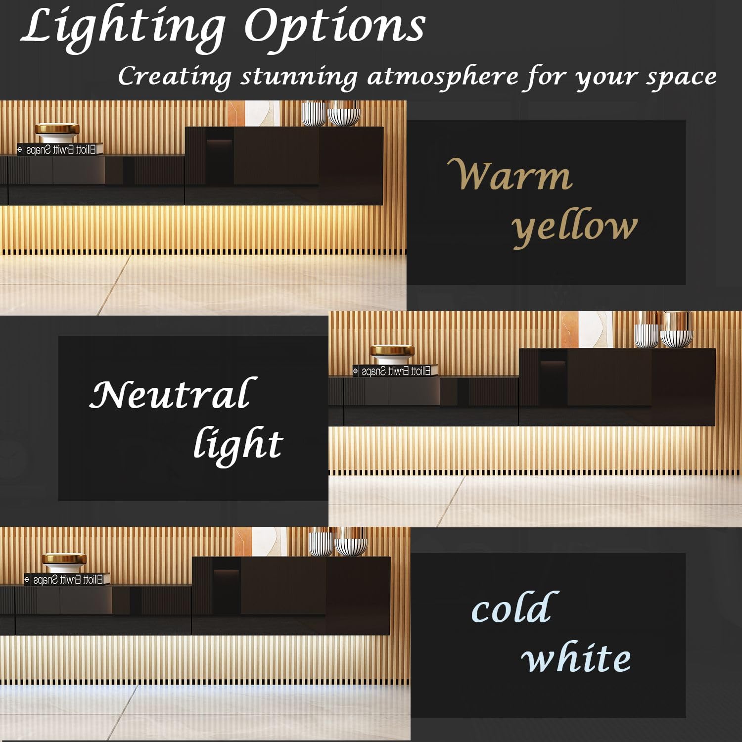 - Lighting Options - The floating TV console features light strips and offers 3 lighting options to meet your lighting needs: cold, neutral and warm. There are 5 drawers providing enough space for your video games, photo albums, wires and so on.