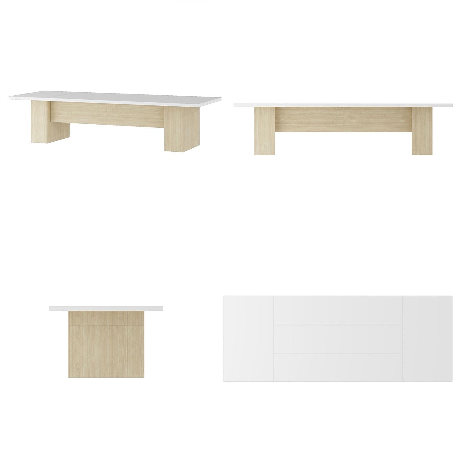 Details: MOUMON Kitchen Dining Table for 8-10, 130 inch Wood Rectangular Kitchen Table, Large Long Dining Table with Wooden Frame, No Chairs, for Dining Room White and Oak(129.9”W x 47.2”D x 29.7”H)