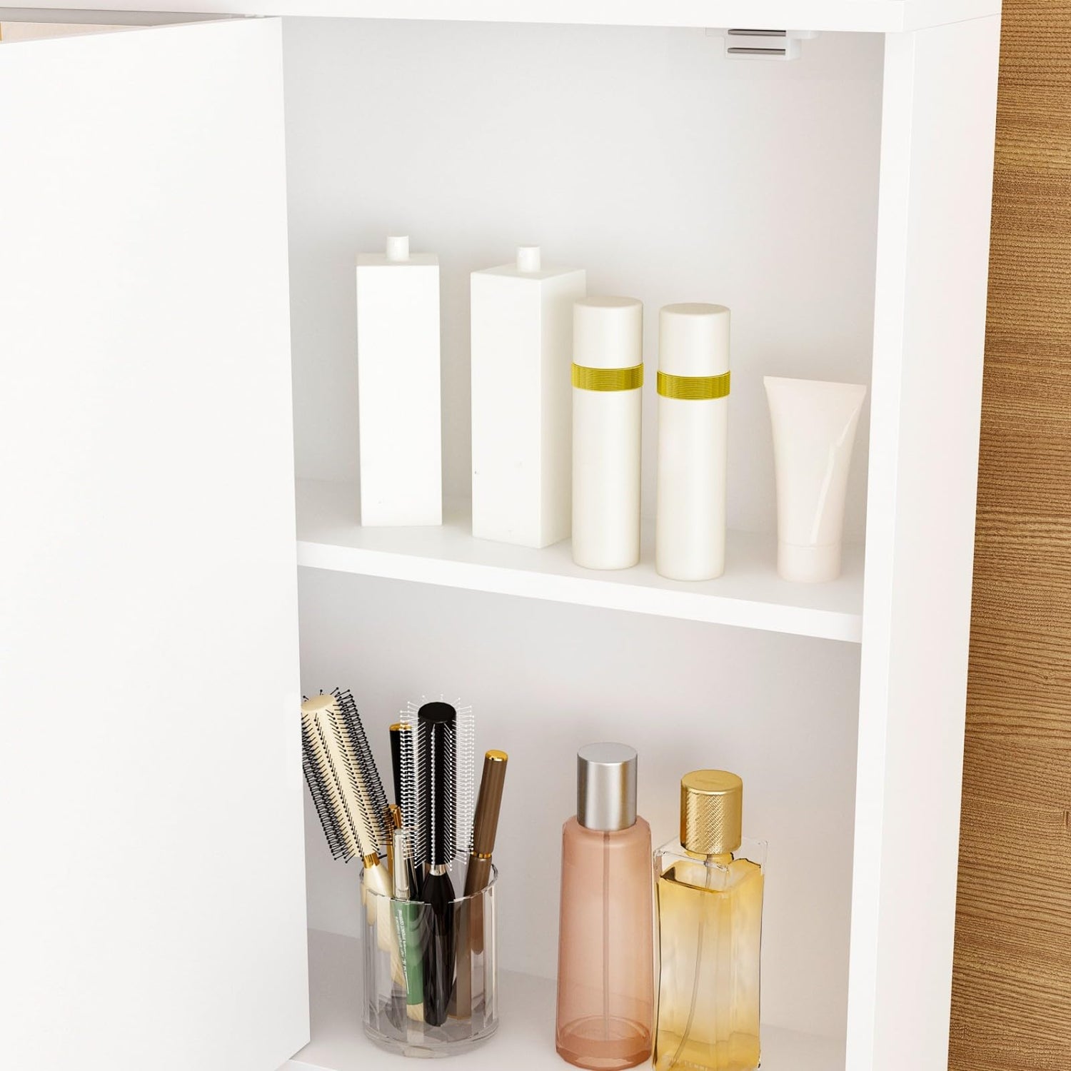 - Open Mirror & Hidden Storage - The upper part of this large makeup vanity features 3 small mirrors. There are storage shelves behind the 2 side mirrors, which provide extra space for nail polish or perfumes. This makeup vanity will offer practical storage and modern experience for makeup.