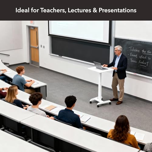 - Smooth mobility, stable support – Glide effortlessly across floors on four caster wheels, then lock two in place for stability. Ideal for dynamic workstations, classroom presentations, or bedside productivity.