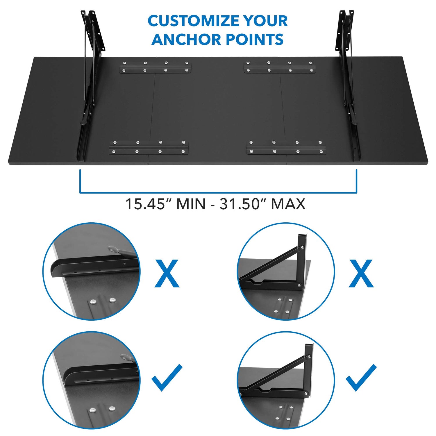 - Secure Folding: The triangle structure of the brackets on this wall mounted folding table increases structural stability, providing you with a firm and solid surface. The bracket lever underneath features a single finger click, making it incredibly easy to fold this drop down wall table back down.