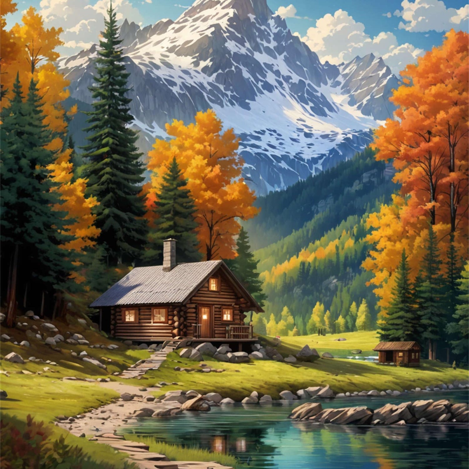 Mountain Paint By Numbers Kit For Adults Beginner Cabin Adult Paint By Number Kits On Canvas Mountain Oil Painting Kit For Beginners Adults' Paint-By-Number Kits For Gift Home Wall Decor 16x20 Inch