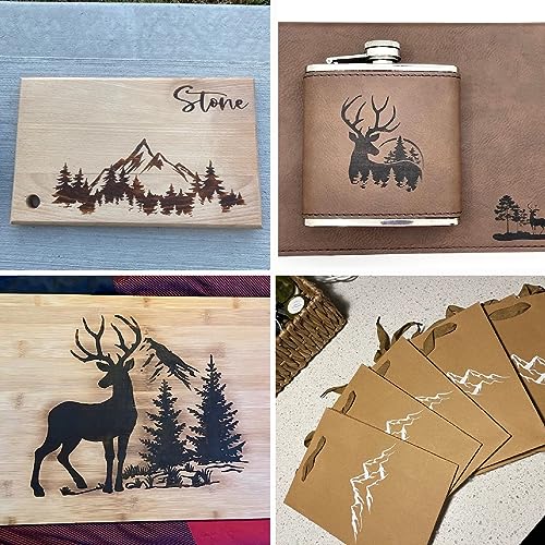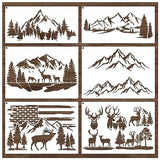 Mountain Stencils for Painting on Wood Burning Stencils and Patterns Reusable Nature Deer Tree Stencils for Crafts Canvas Furniture Wall Drawing