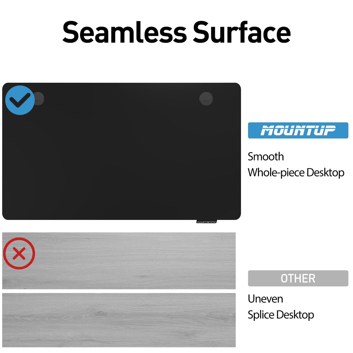 - Seamless Surface: The one-piece desktop is free of seam breaks for a completely smooth surface. 48"x24" eco-friendly desktop offers ample workspace for a variety of monitor and laptop setups along with important work materials, supplies, and decor.