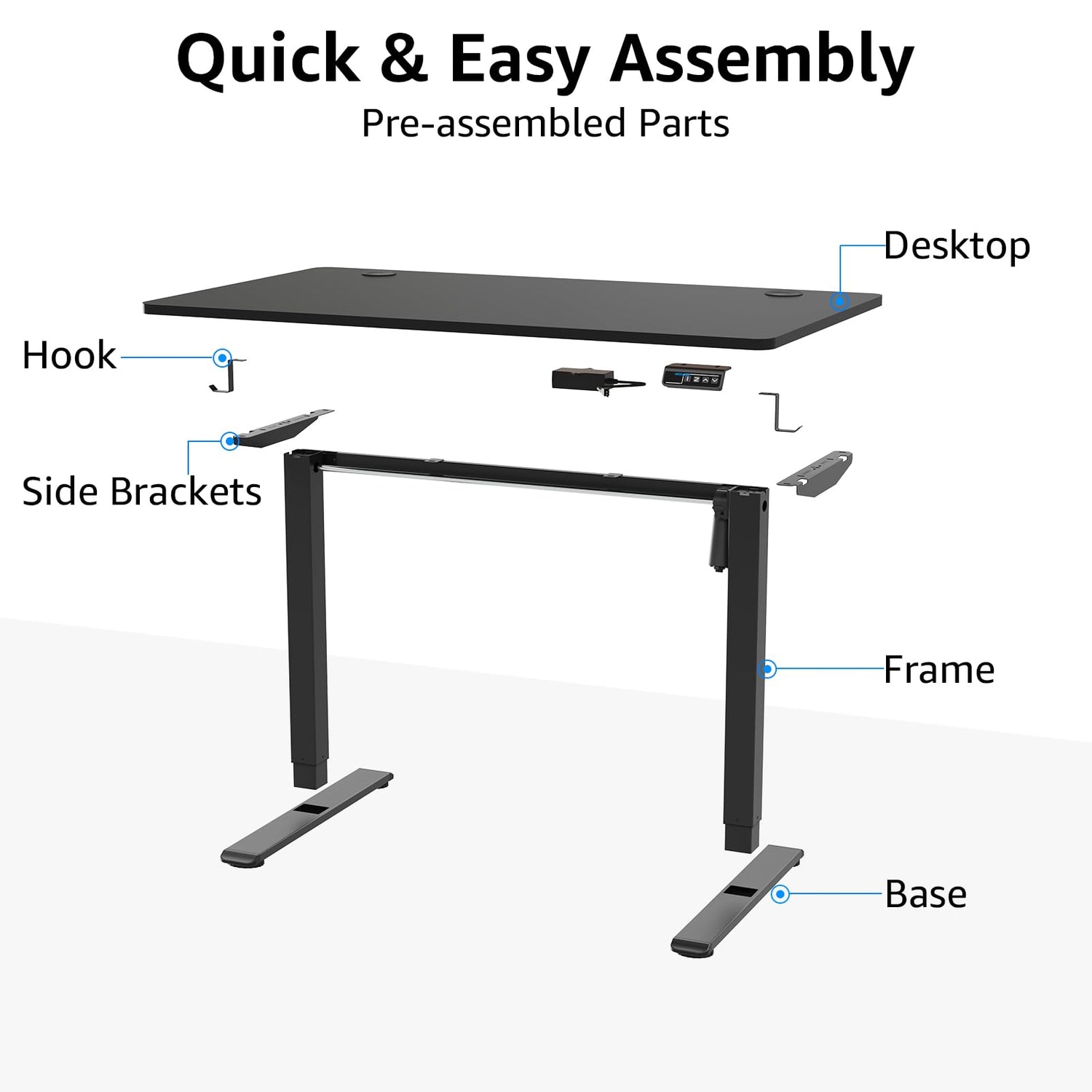 - Quick & Easy Assembly: Pre-assembled crossbeam simplify the setup process, freeing up time so you can get back to what matters most. Equipped with all the parts needed to get the desk setup in 15 minutes!