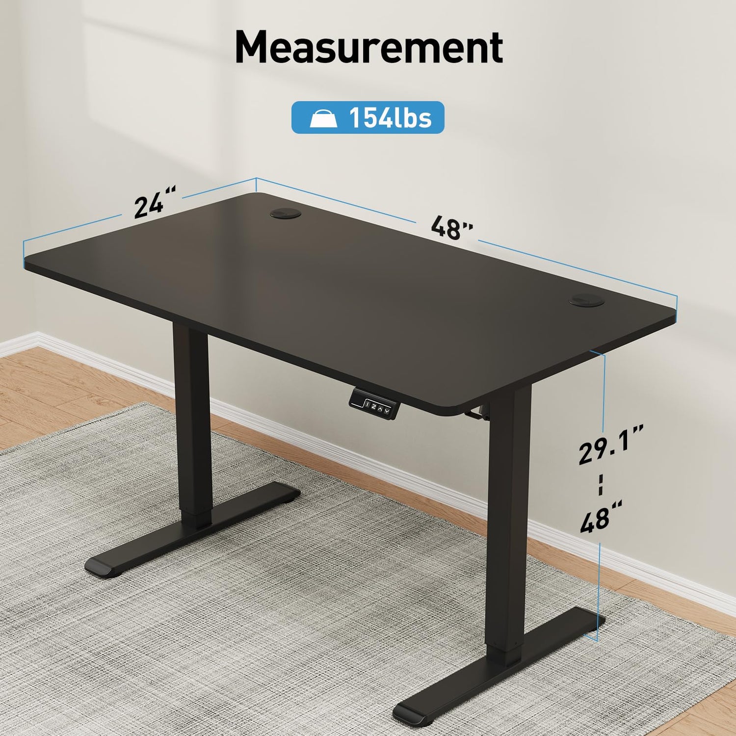 - Smooth Height Adjustment: Easily switch between different heights ranging from 29.1" to 48". Powered by an electric lift mechanism, our standing desk offers quiet operation to ensure minimal distractions.