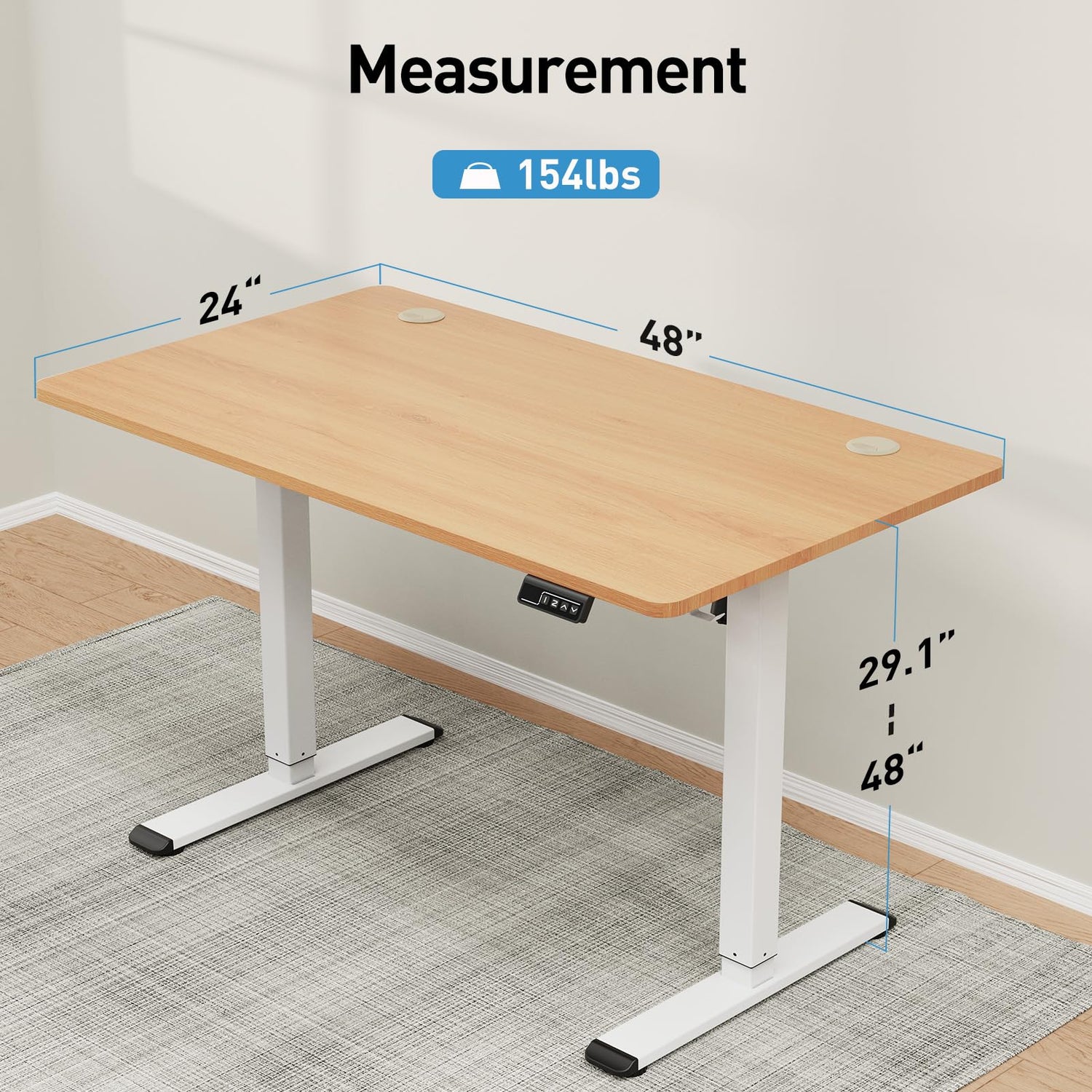 MOUNTUP Height Adjustable Electric Standing Desk Whole-Piece, 48 x 24 Inches Quick Assembly Sit Stand Desk, Stand Up Desk with Memory Controller, Ergonomic Desk, Oak