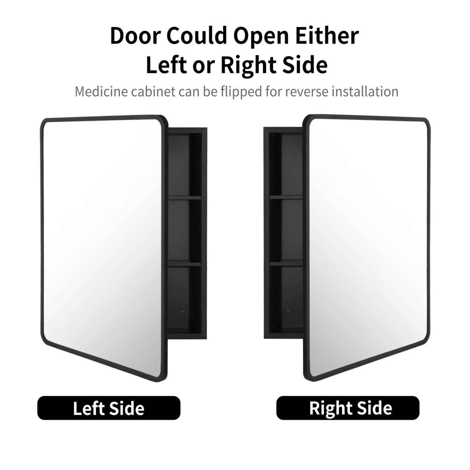 - Straightforward Installation: This bathroom medicine cabinet comes 95% assembled, all you need to do is to install the screws on the back and choose the location you like to install. Two-way adjustable hinges with 108-degree opening capability for easy cabinet access. You can open the door on the left, or flip 180° to open the door on the right.